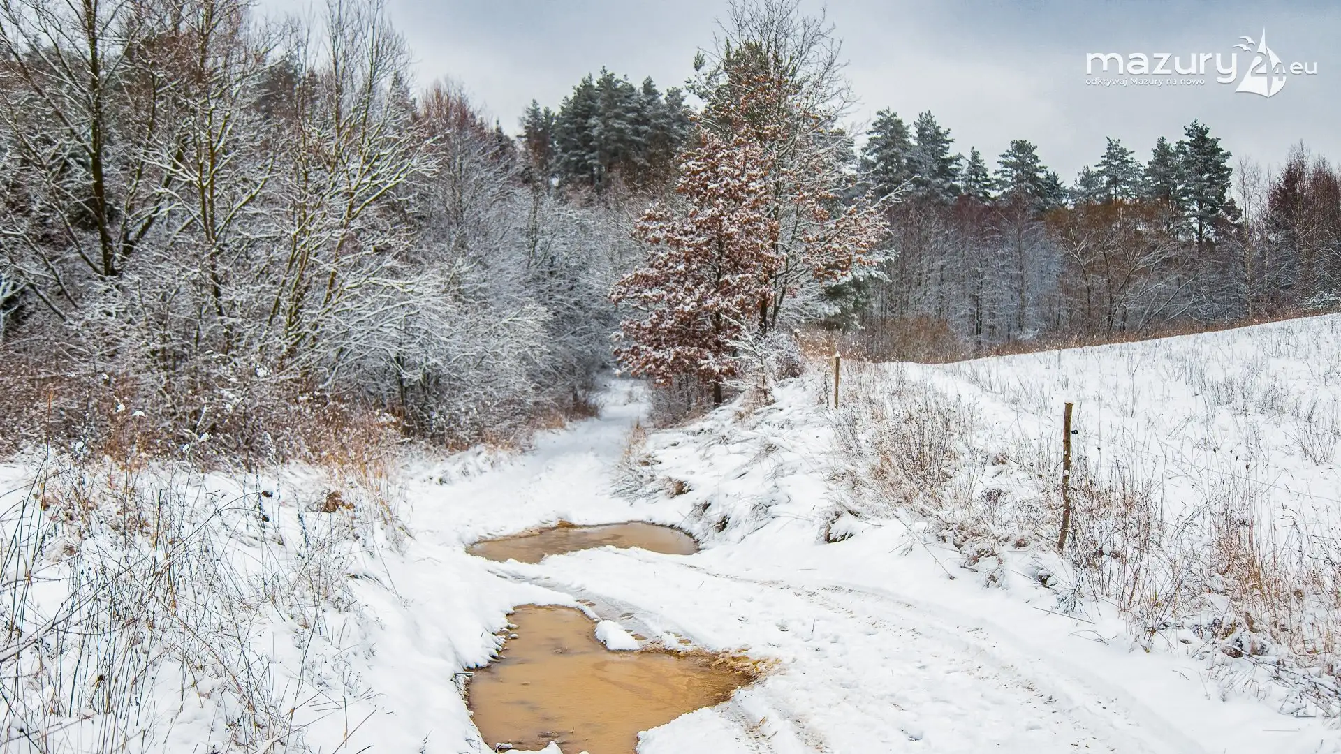 W końcu posypało śniegiem na Mazurach. Może nie były to opady jak podczas zimy stulecia, ale szarość zmieniła się w biel. Troszkę więcej śniegu znaleźliśmy przy wsiach Gajrowskie i Orłowo - teraz czekamy na więcej opadów a potem marzy nam się słońce.
