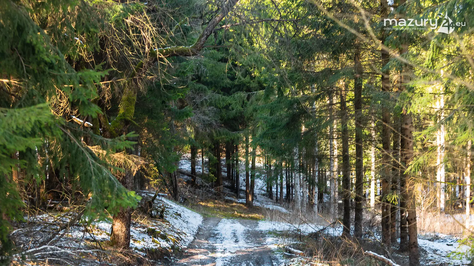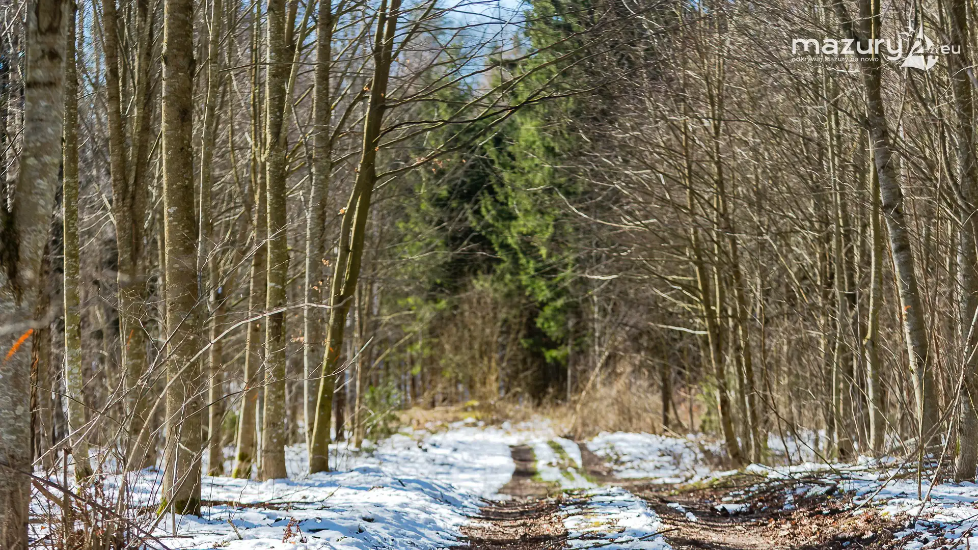 Niezdecydowana zima w lesie miejskim w Giżycku