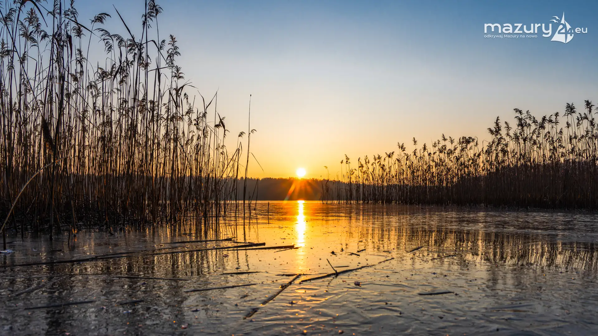 Zachód słońca nad jeziorem Skarż Wielki, luty 2025 r.