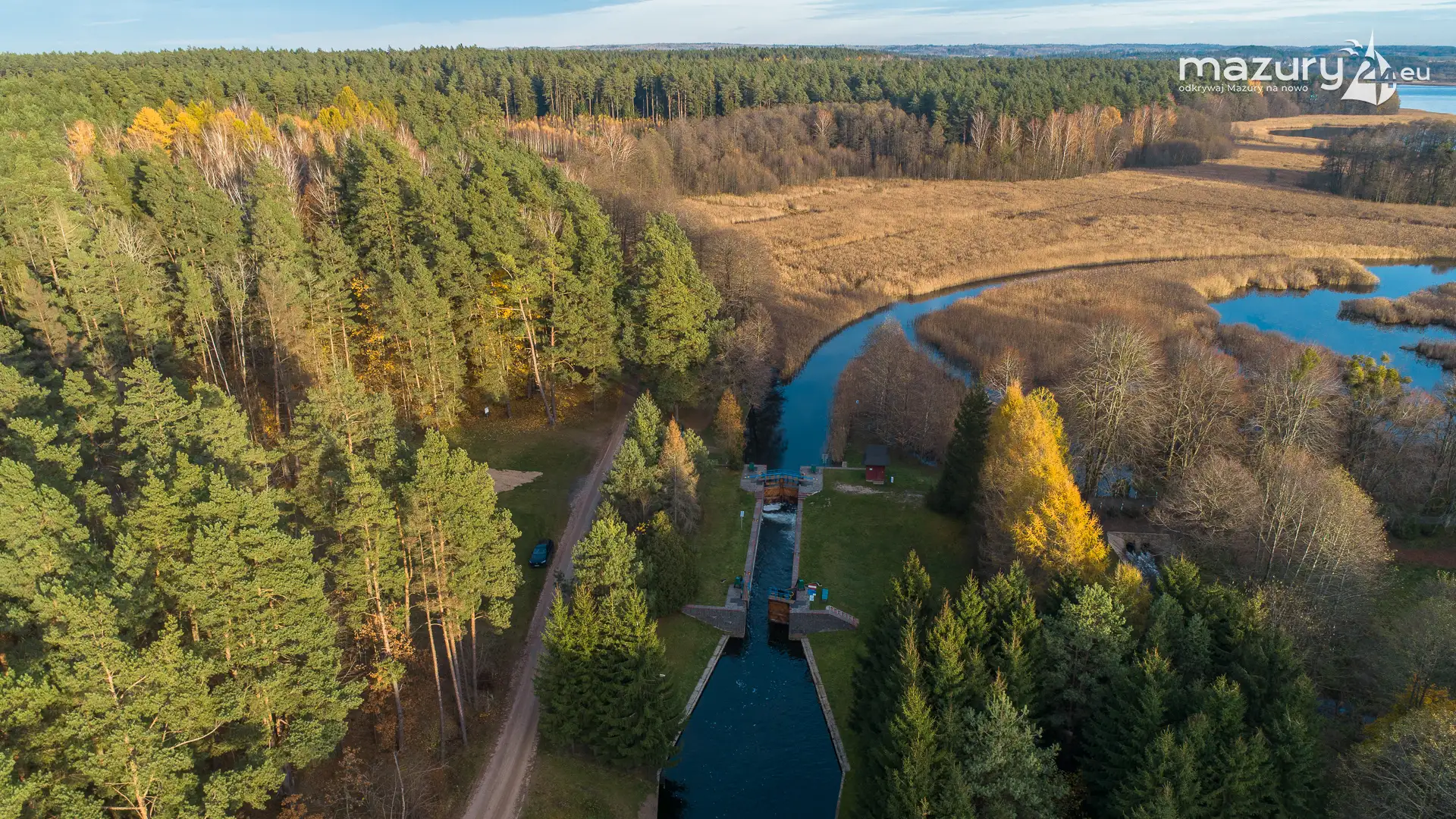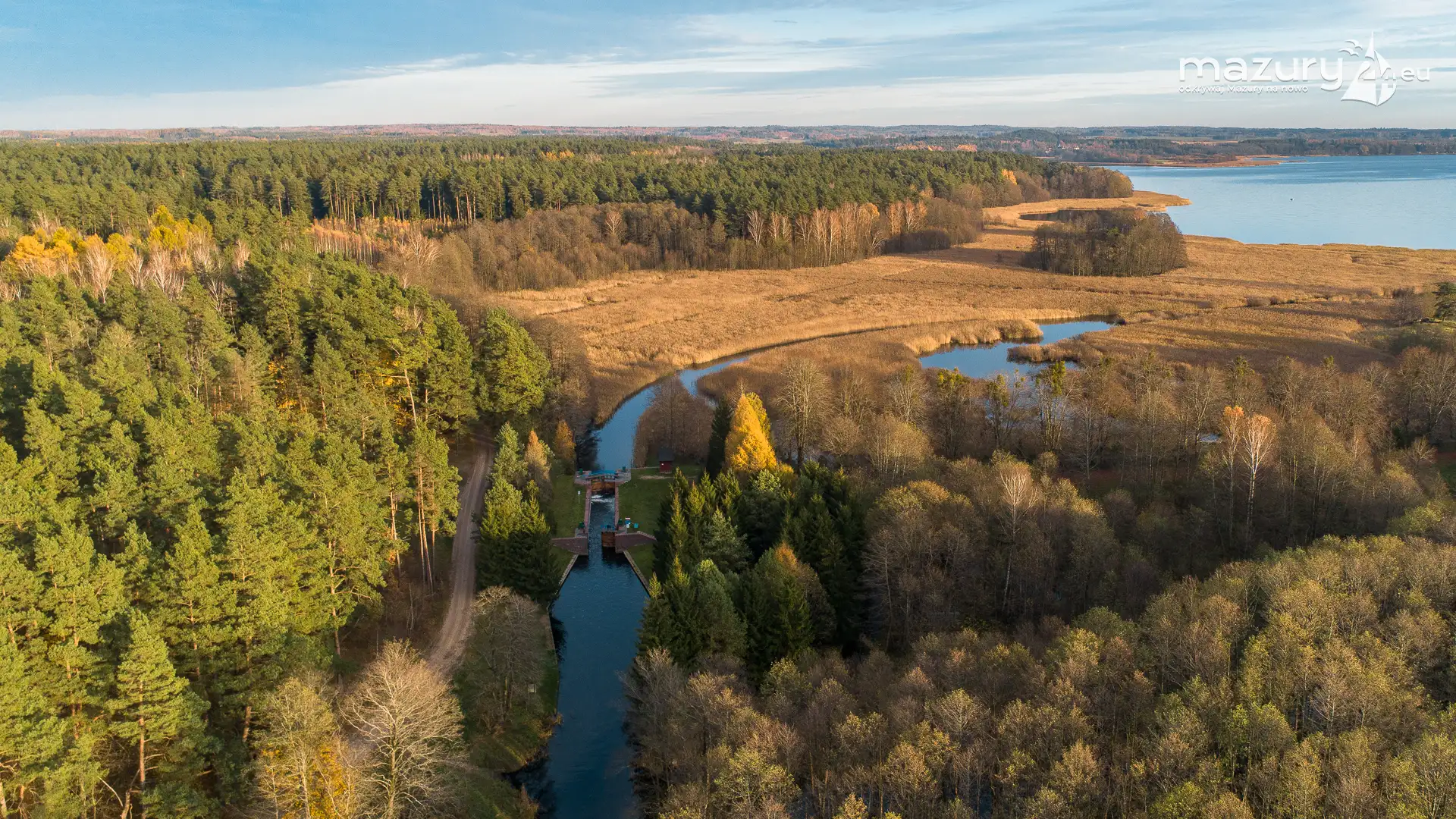 Kilka dni temu szukaliśmy kolejnych inspiracji, aby pokazać Wam końcówkę, pięknej i złotej mazurskiej jesieni. Odwiedziliśmy wyremontowaną śluzę Przerwanki, która łączy jezioro Gołdopiwo, rzekę Sapinę i jezioro Wilkus. Nie zawiedliśmy się, Mazury prawie w każdym miejscy wyglądają niesamowicie, zwłaszcza z lotu ptaka (drona).