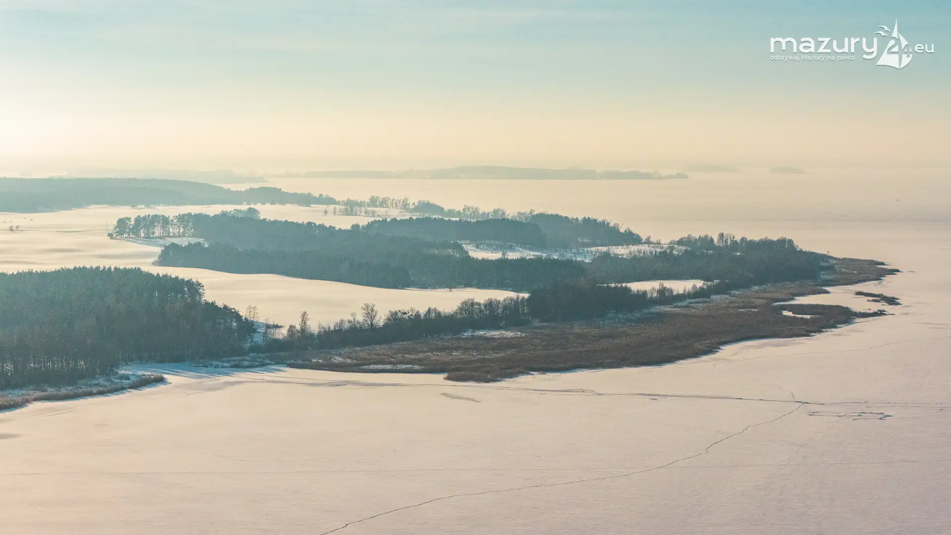 Zachód słońca nad jeziorem Śniardwy z drona, styczeń 2026 r.