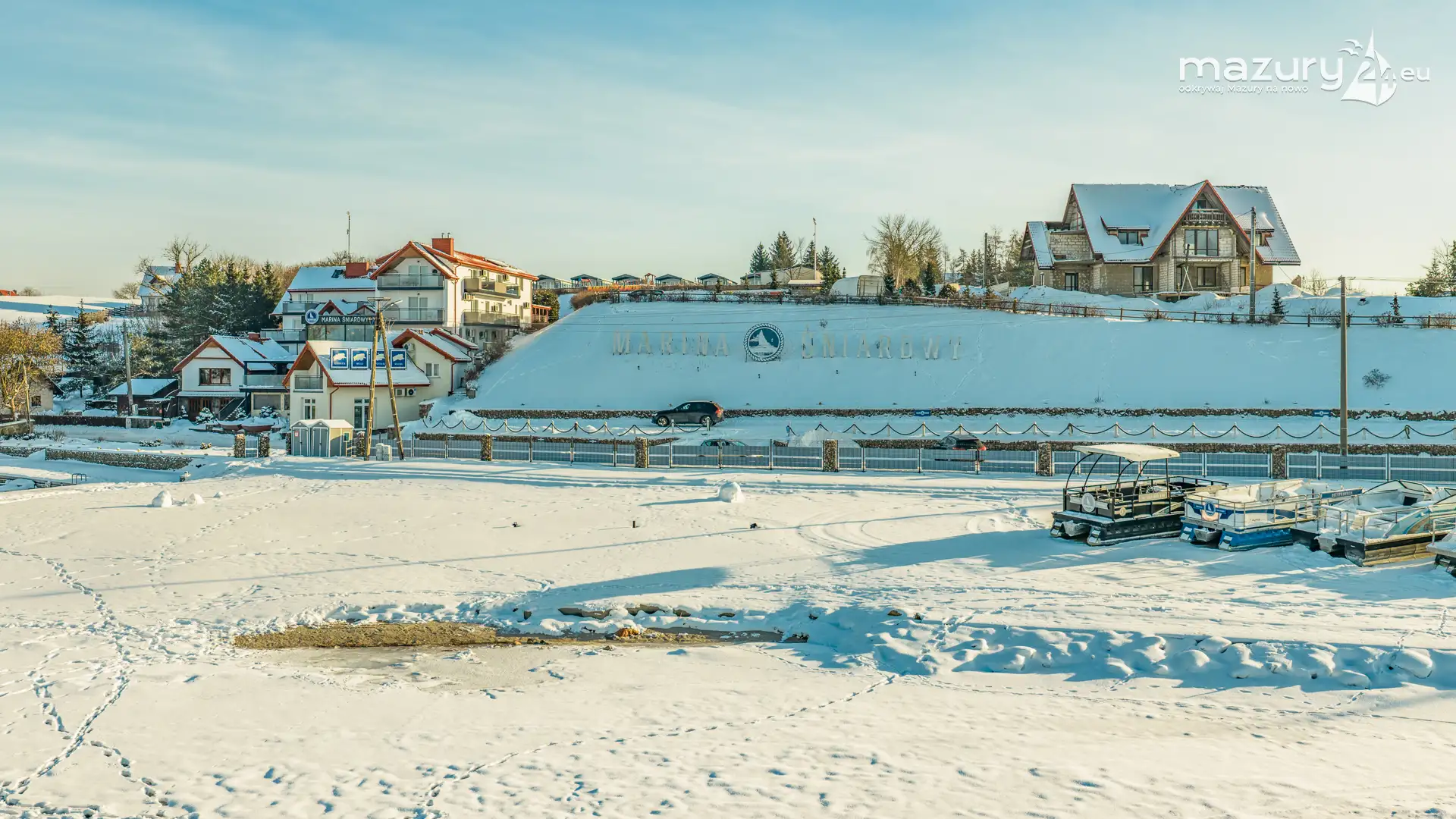Zimowe Mazury są równie piękne jak te latem. Fakt, w kadrze inne kolory, a nad jeziorem inna temperatura, ale gdy spojrzymy na ten region przez pryzmat przyrody i cyklu natury - również można się zachwycać. Gdy zamarzają Śniardwy, inne też jest wykorzystanie tego największego, polskiego jeziora. Quady, bojery, samochody, narty biegowe i spacery. Na zdjęciach nasz port partnerski Marina Śniardwy w Nowych Gutach.