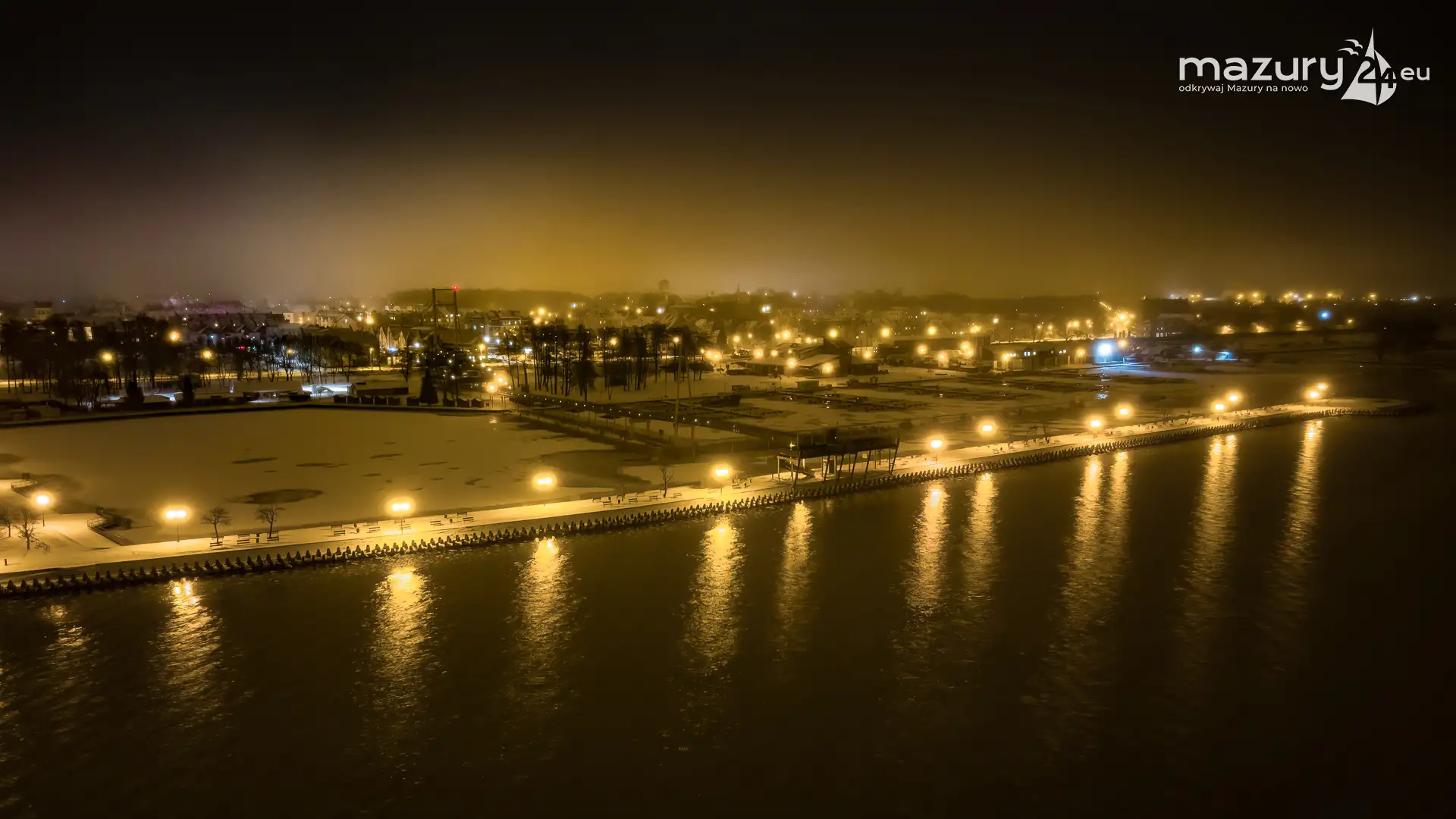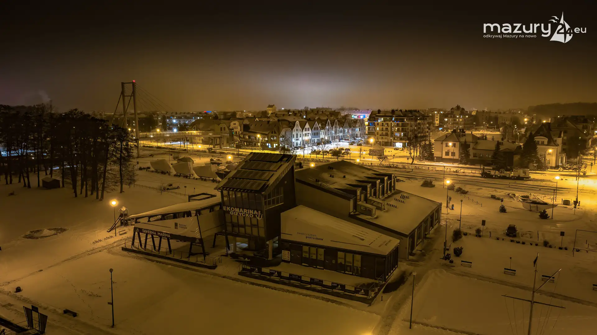 Kilka dni temu udało nam się polatać nad zamglonym i jeszcze zimowym Giżyckiem. Mgła rozproszyła światło i stworzyła ciekawy klimat na zdjęciach, biały śnieg odbijał światło zmieniając całkowicie wygląd wieczornego miasta widzianego z góry.