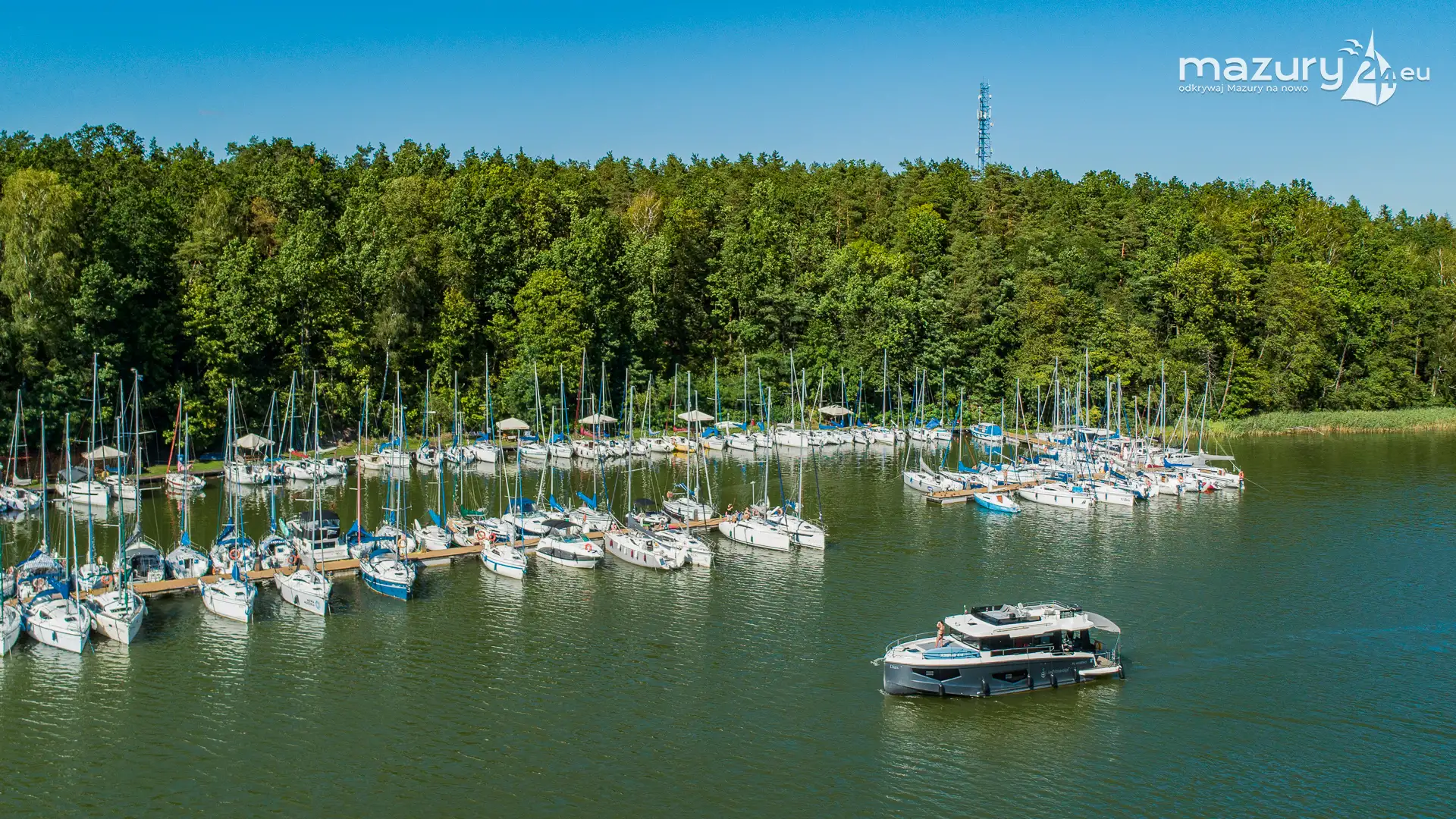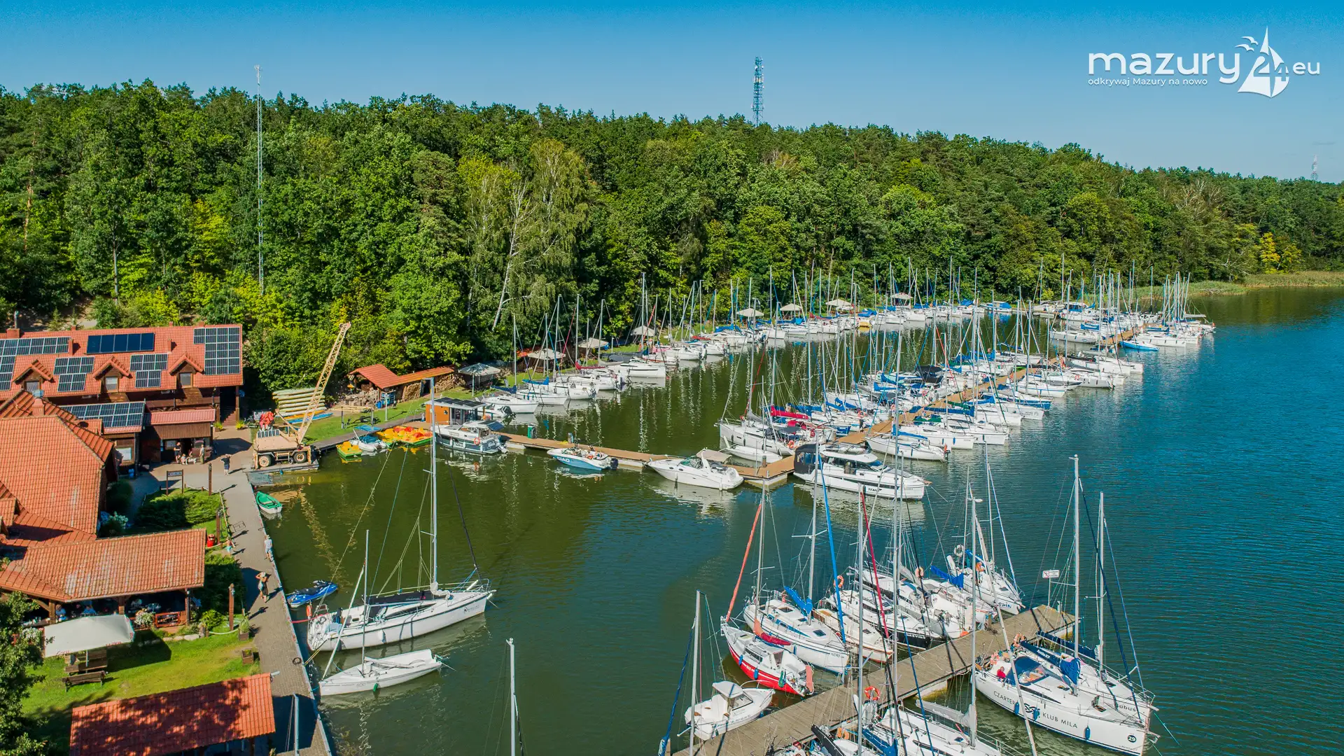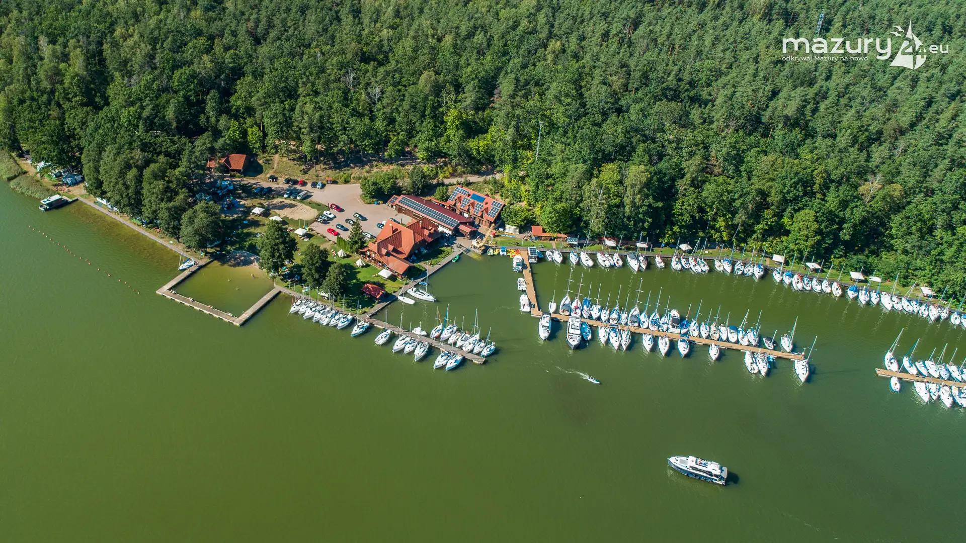 W drugiej połowie sierpnia 2025 wzbiliśmy się nad jezioro Nidzkie by w kadry złapać jedną z piękniejszych, mazurskich marin. Jest to też miejsce, które oddziela żeglarską od motorowodnej części jeziora Nidzkiego. Polecamy to miejsce na wypoczynek, cumowanie, urlop, czy... wynajem sprzętu wodnego lub czarteru.
