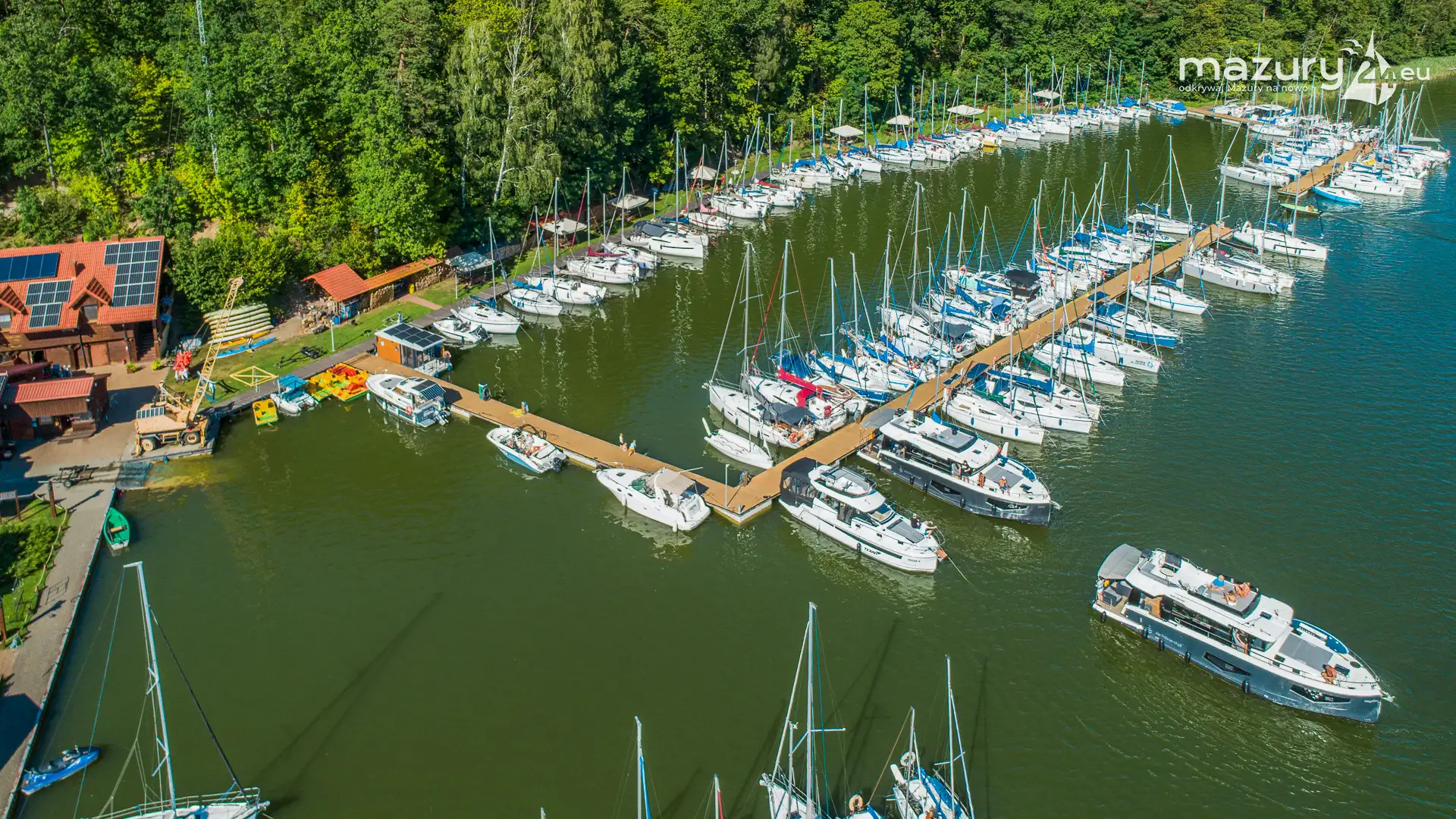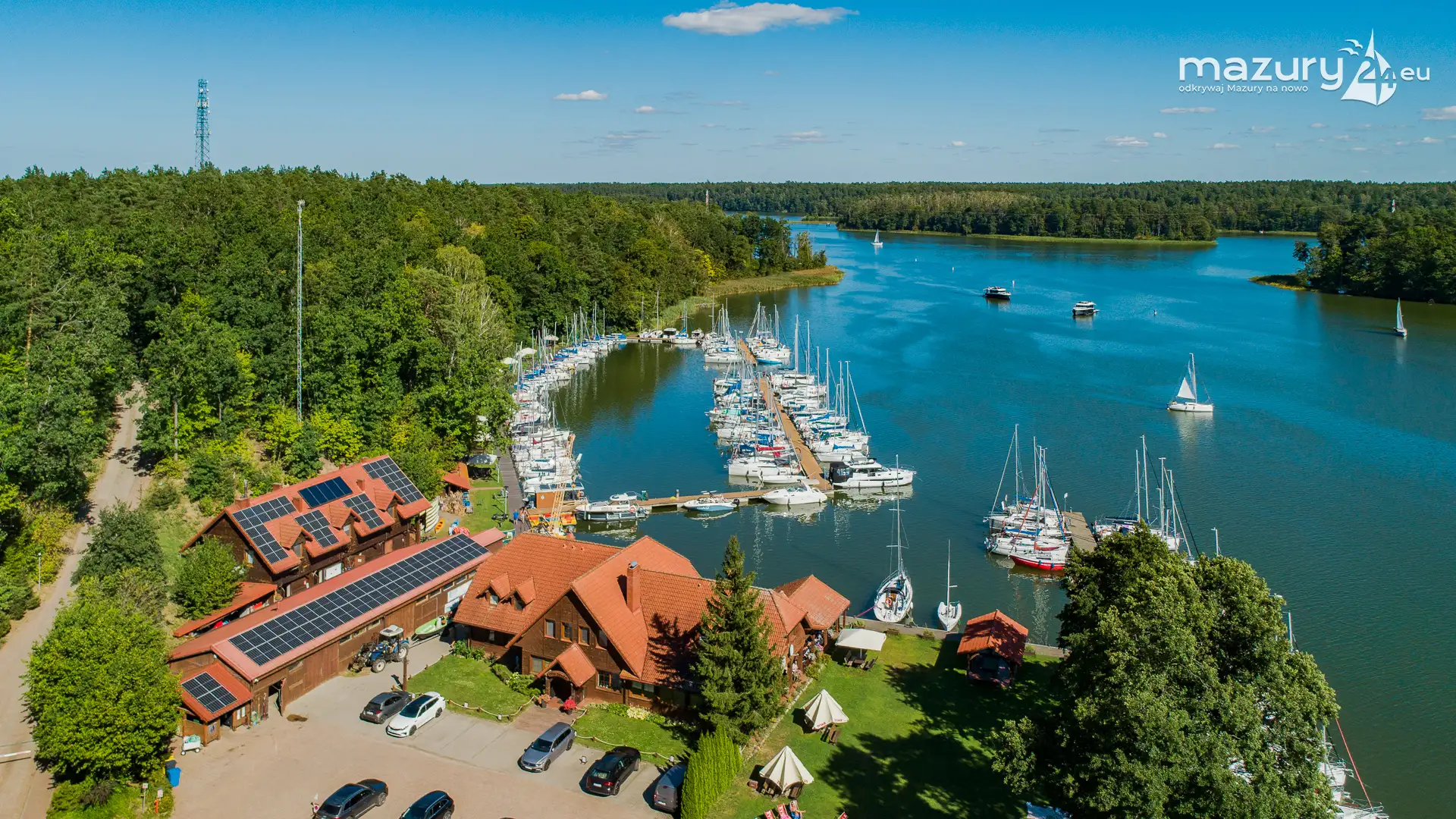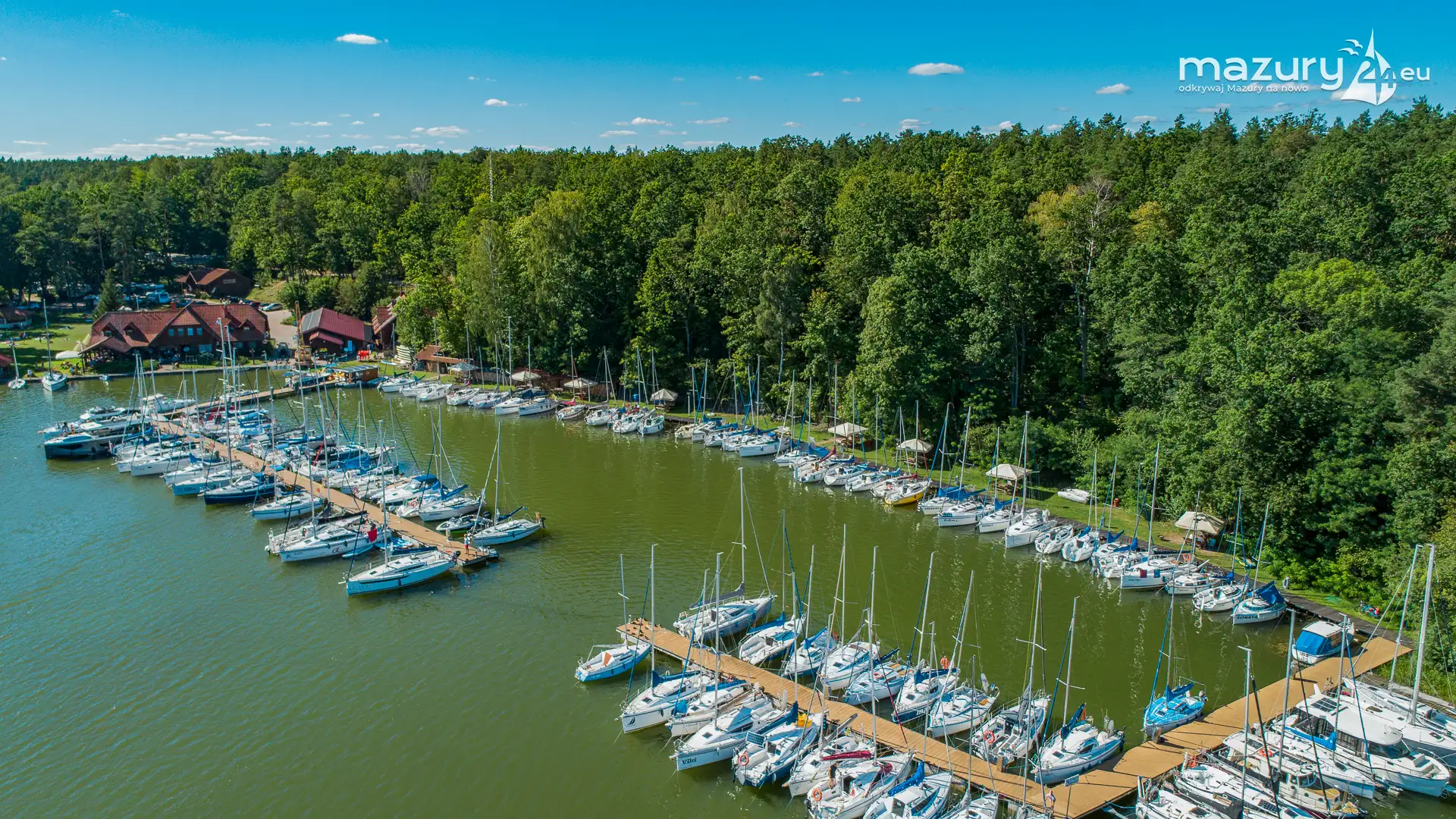 W drugiej połowie sierpnia 2025 wzbiliśmy się nad jezioro Nidzkie by w kadry złapać jedną z piękniejszych, mazurskich marin. Jest to też miejsce, które oddziela żeglarską od motorowodnej części jeziora Nidzkiego. Polecamy to miejsce na wypoczynek, cumowanie, urlop, czy... wynajem sprzętu wodnego lub czarteru.