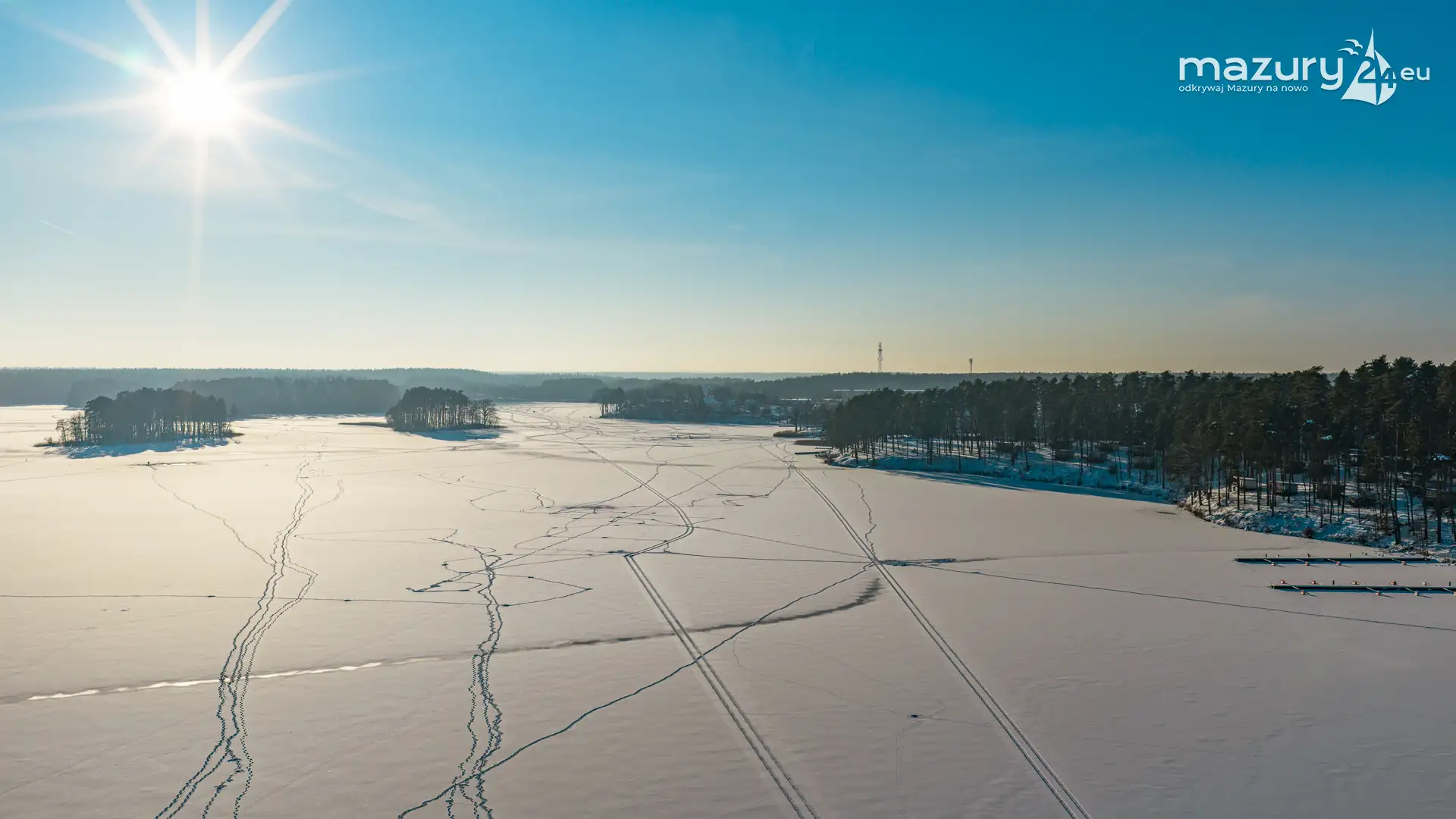 Zachód słońca nad jeziorem Śniardwy z drona, styczeń 2026 r.