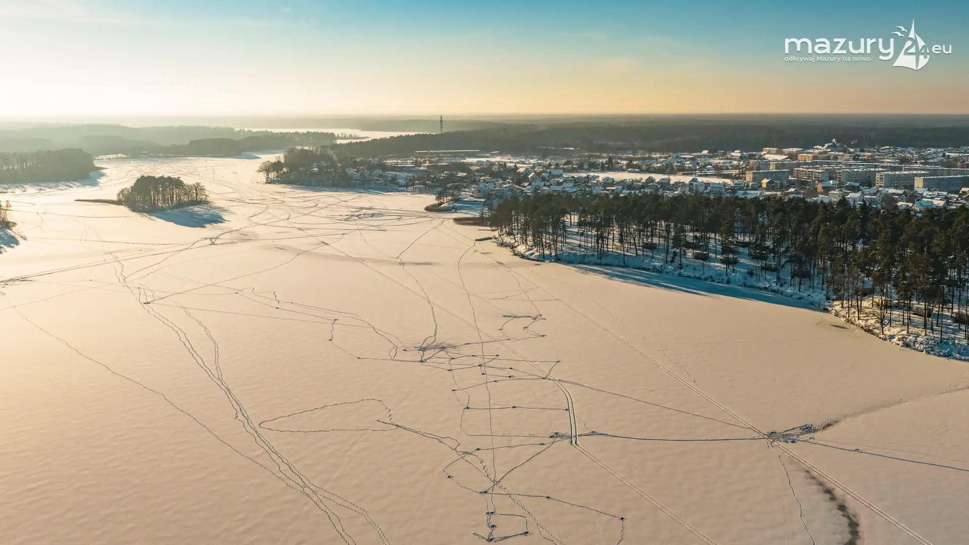 Kolejna, zimowa odsłona jeziora Nidzkiego, Rucianego-Nidy oraz naszego portu partnerskiego OW Wodnik z lotu ptaka. Mazury skąpane w śniegu, z zamarzniętymi jeziorami mają zupełnie inne kolory, a nawet kształty... Nie wyglądają jak kraina tysiąca jezior... tylko jak kraina tysiąca pól i łąk otoczonych lasami, schowanych mocno pod śniegiem...