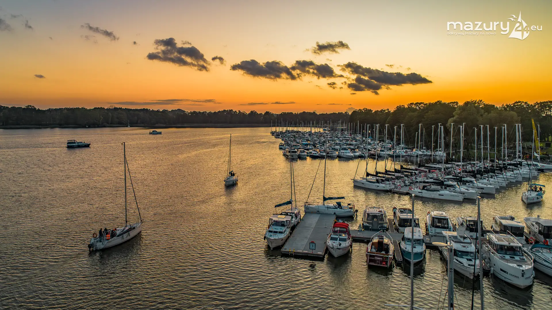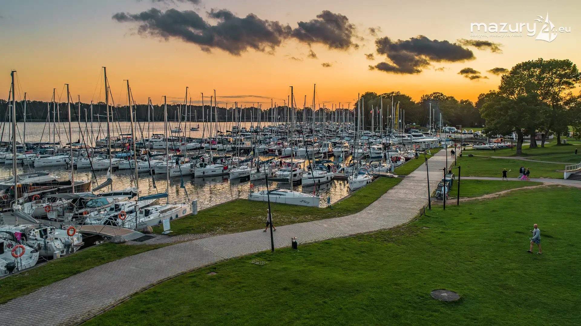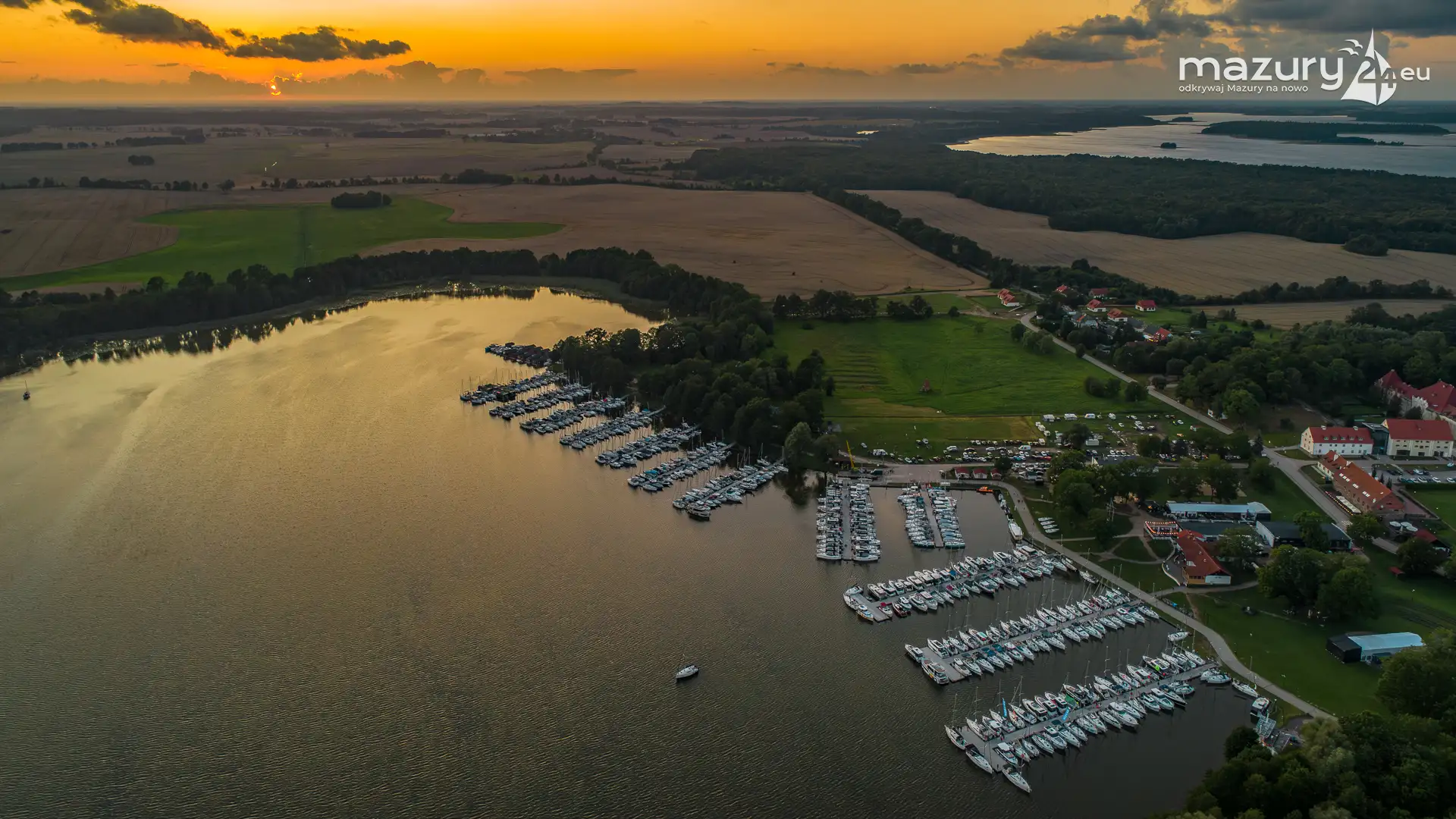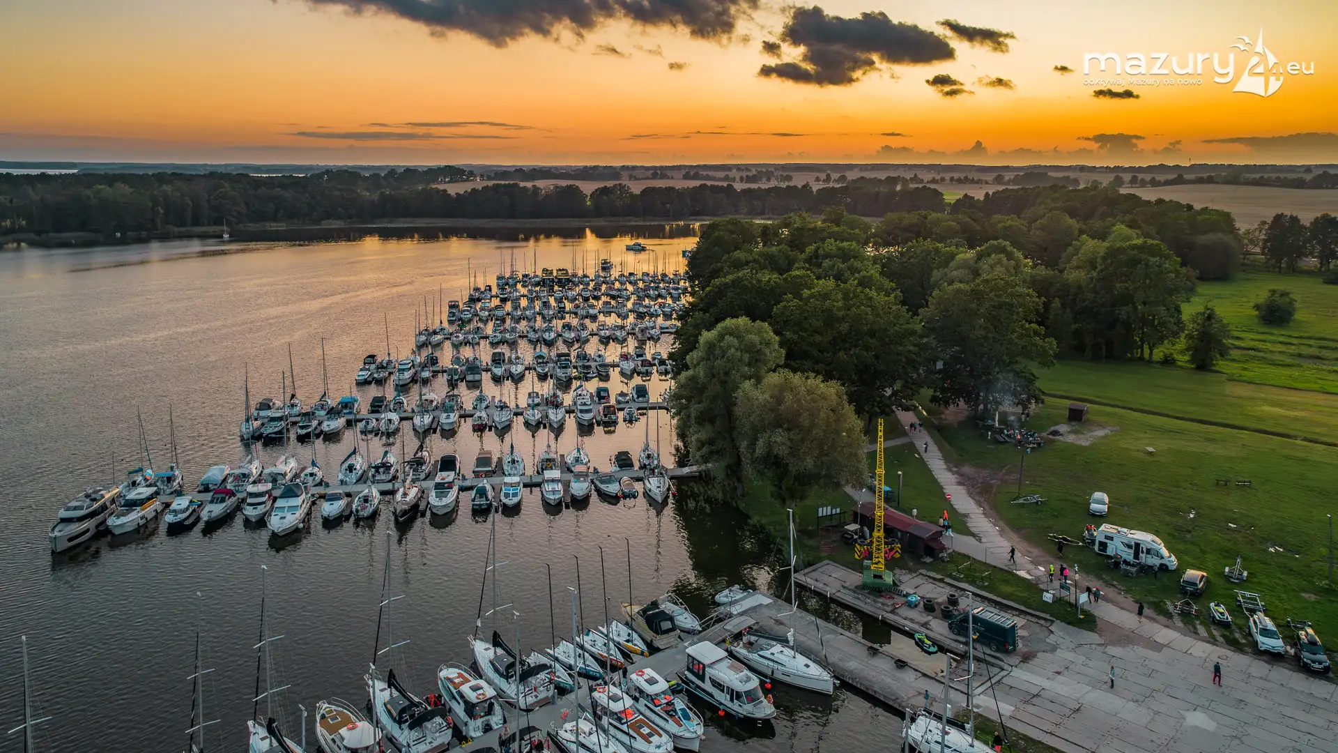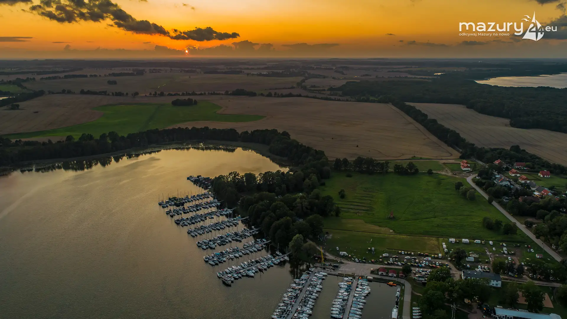 Port PTTK o zachodzie słońca z drona, sierpień 2025 r.