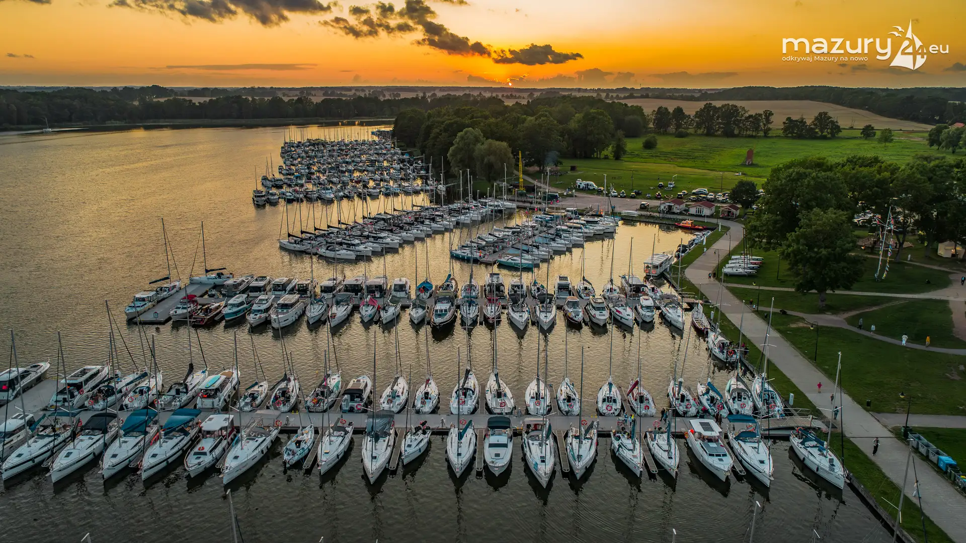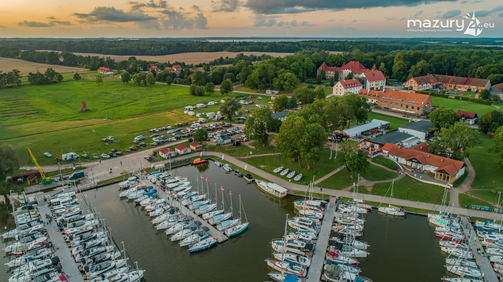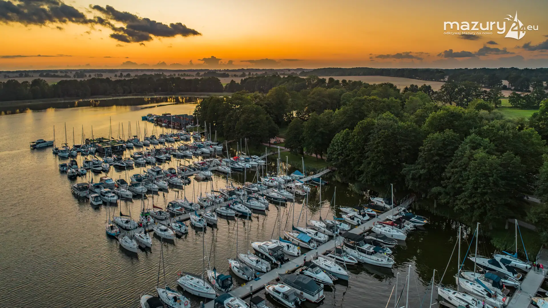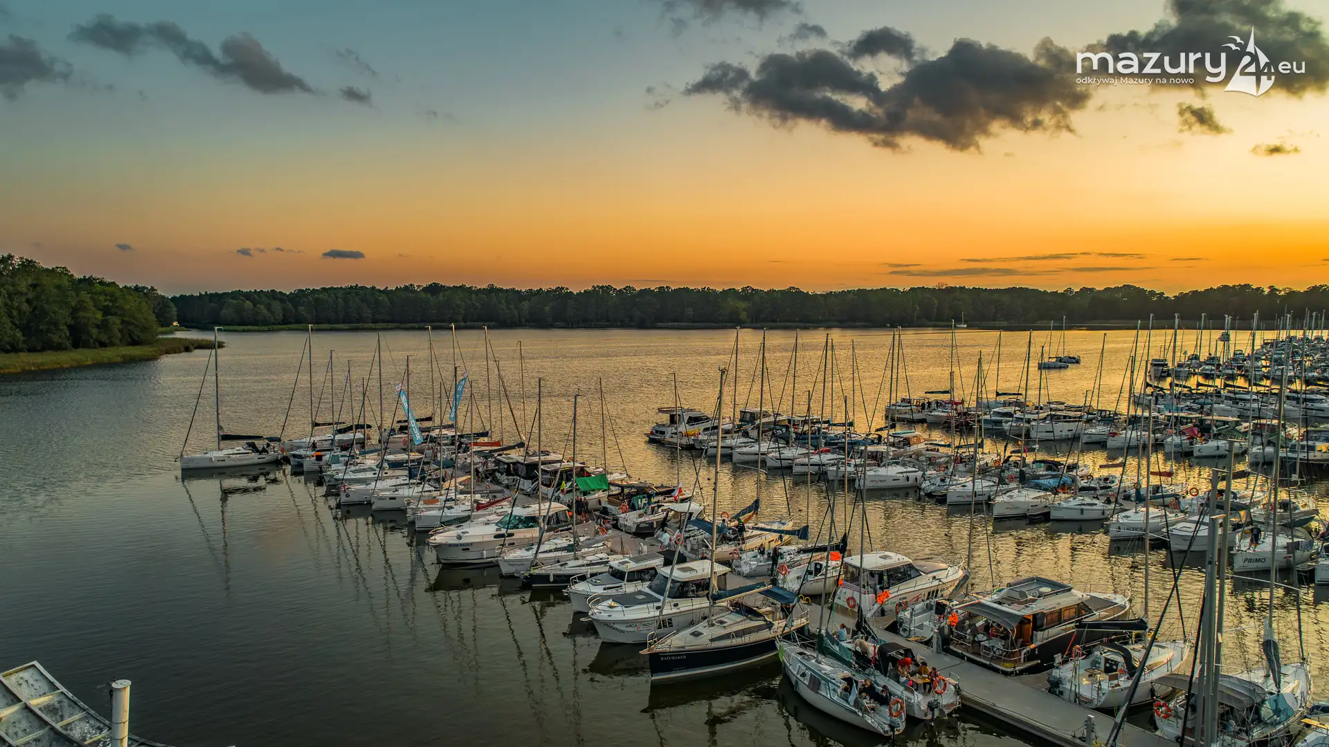 Port PTTK o zachodzie słońca z drona, sierpień 2025 r.