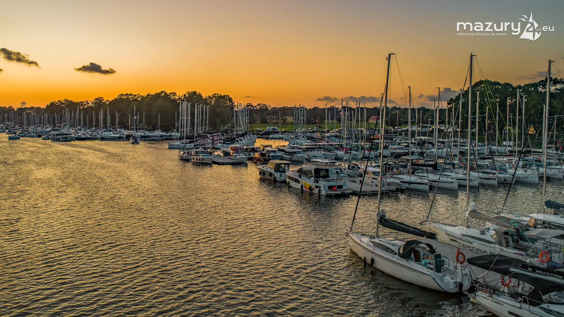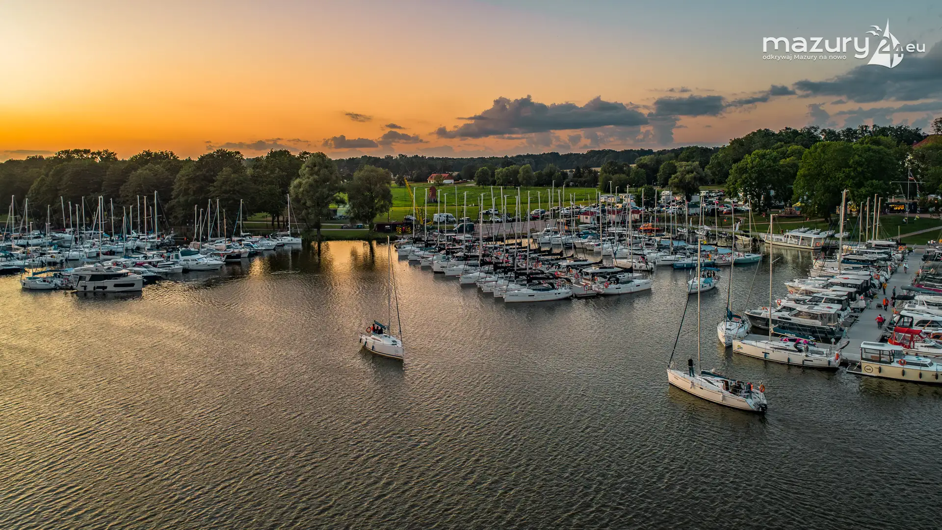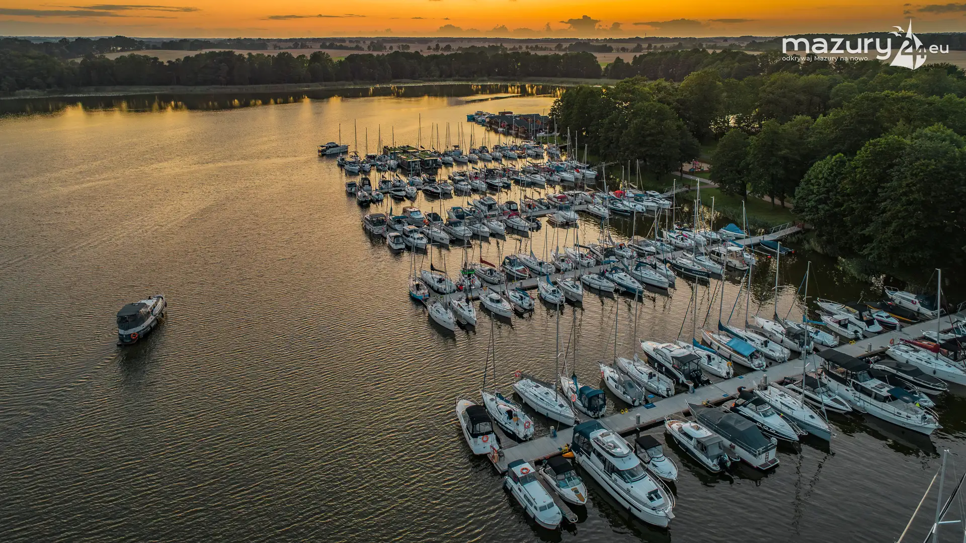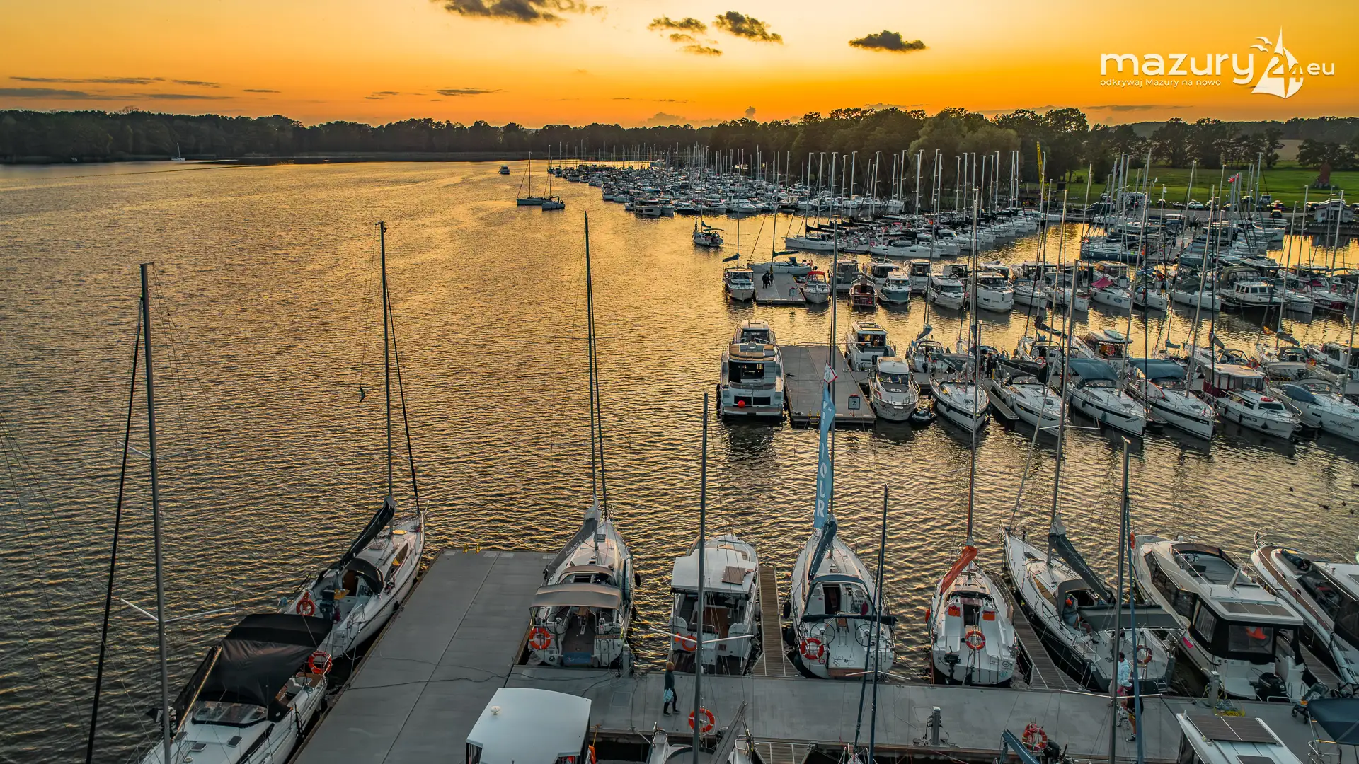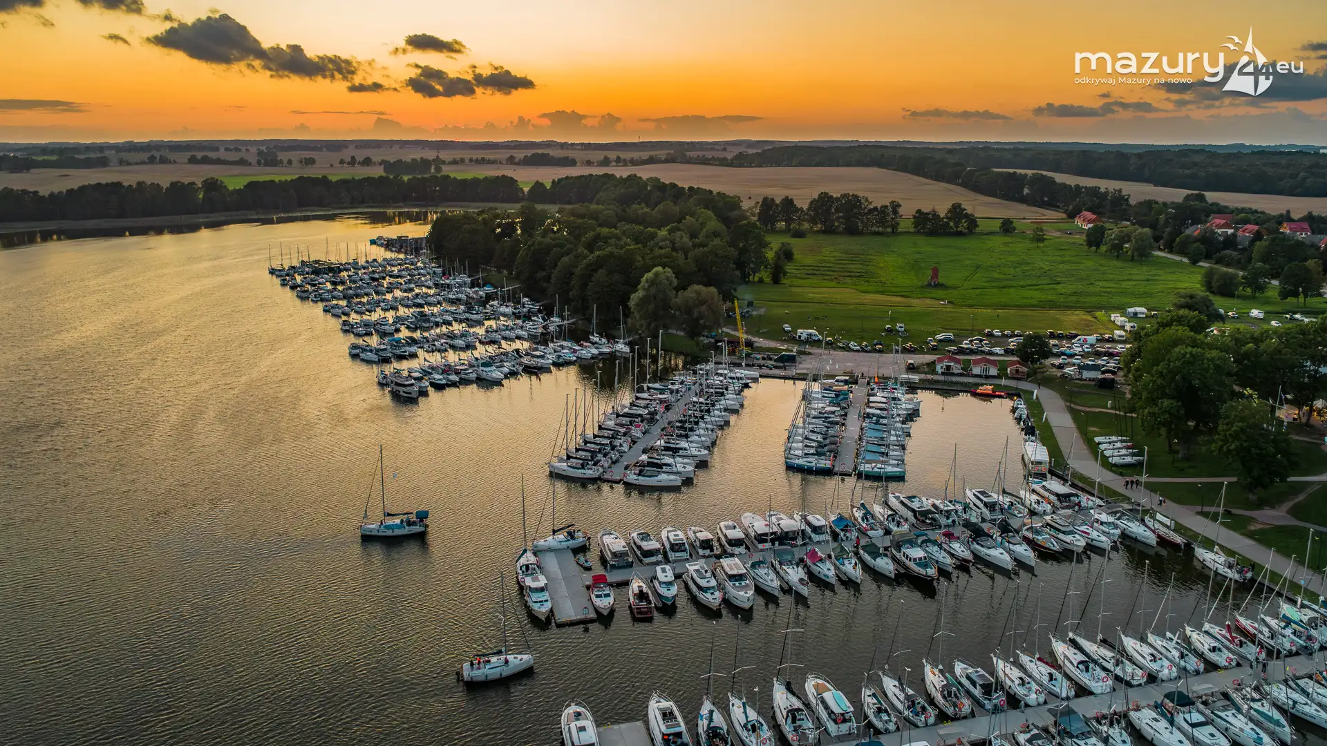 Port PTTK o zachodzie słońca z drona, sierpień 2025 r.