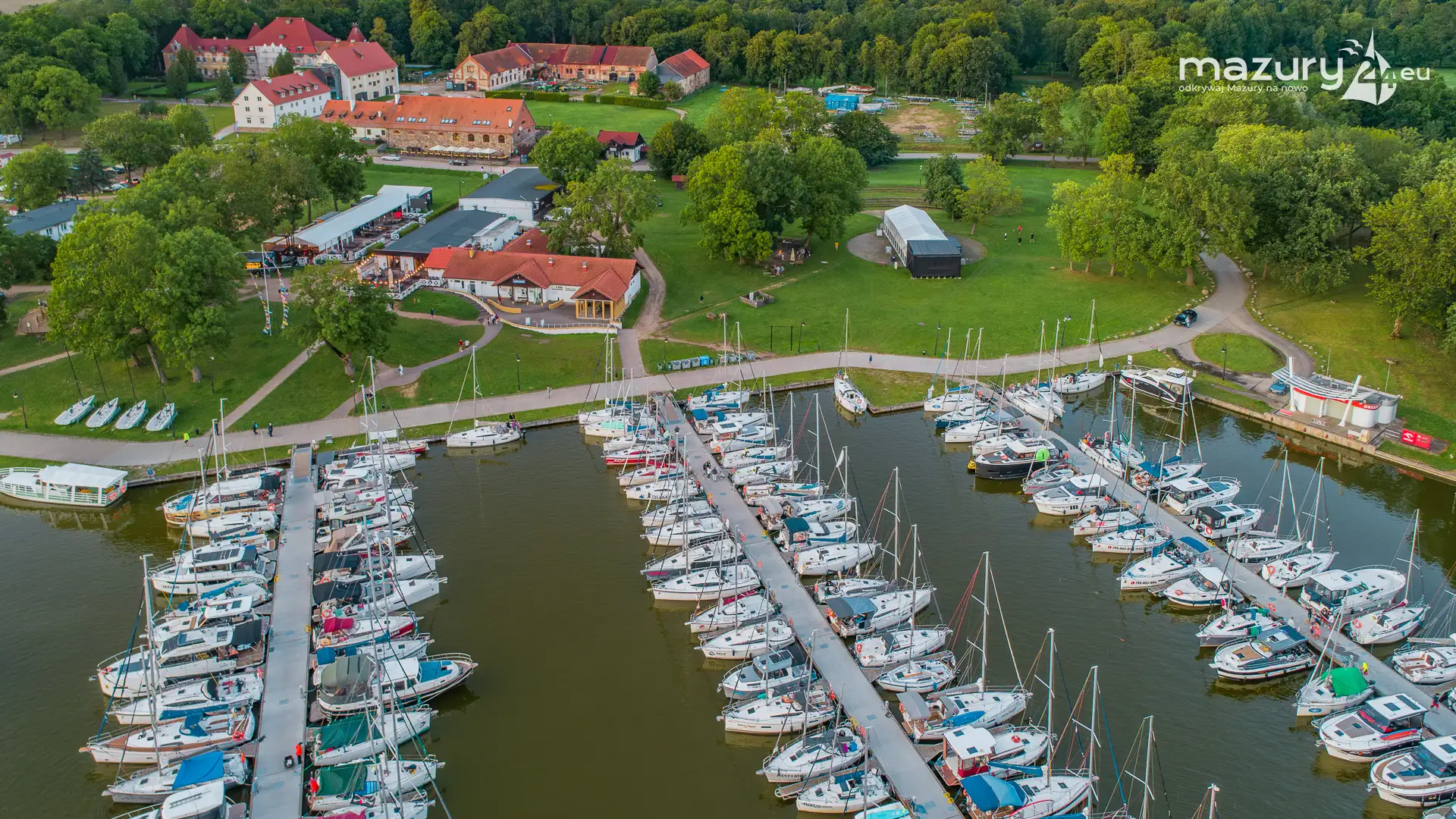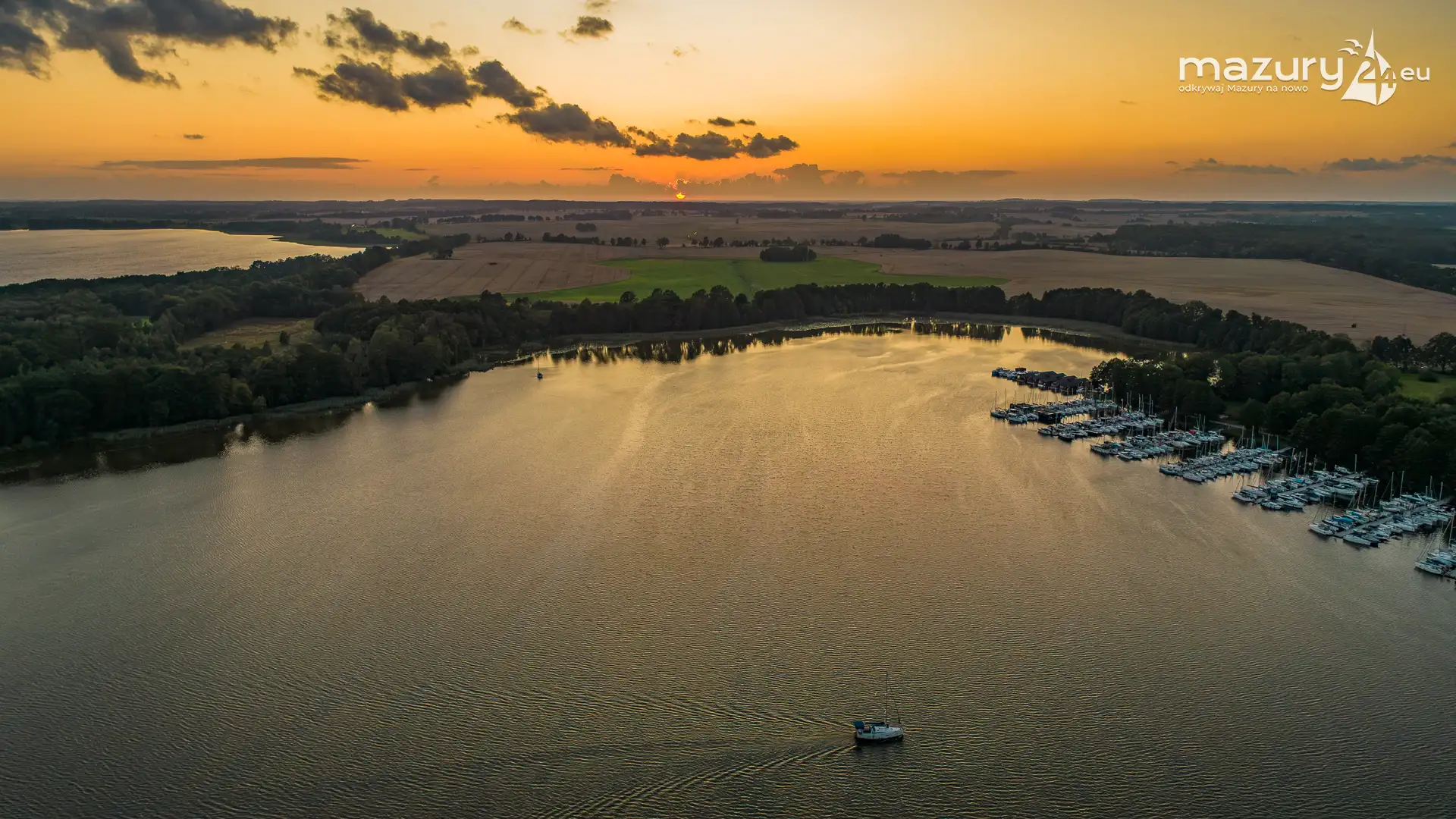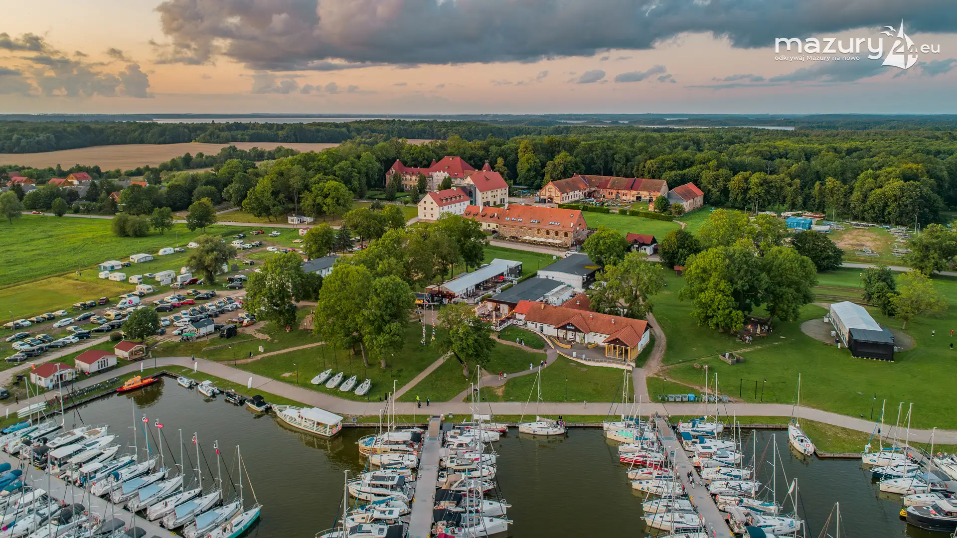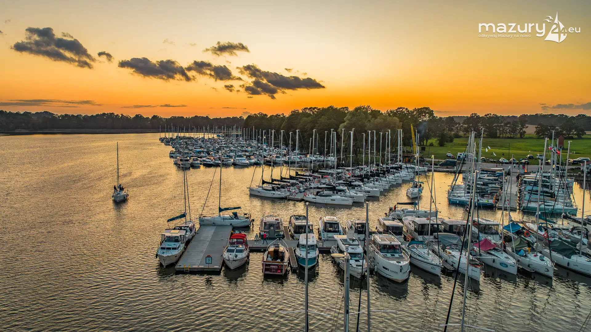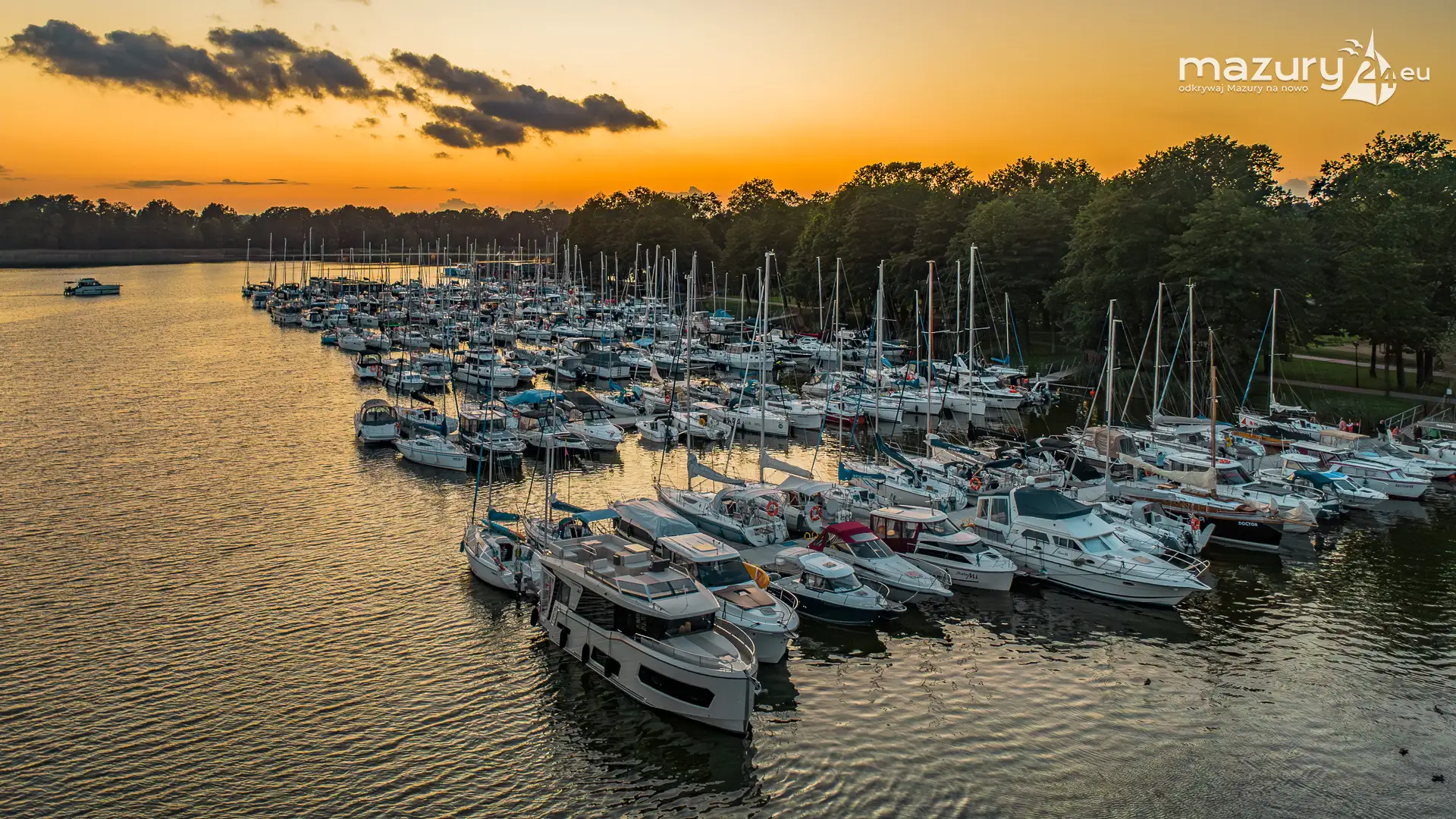 Port PTTK o zachodzie słońca z drona, sierpień 2025 r.