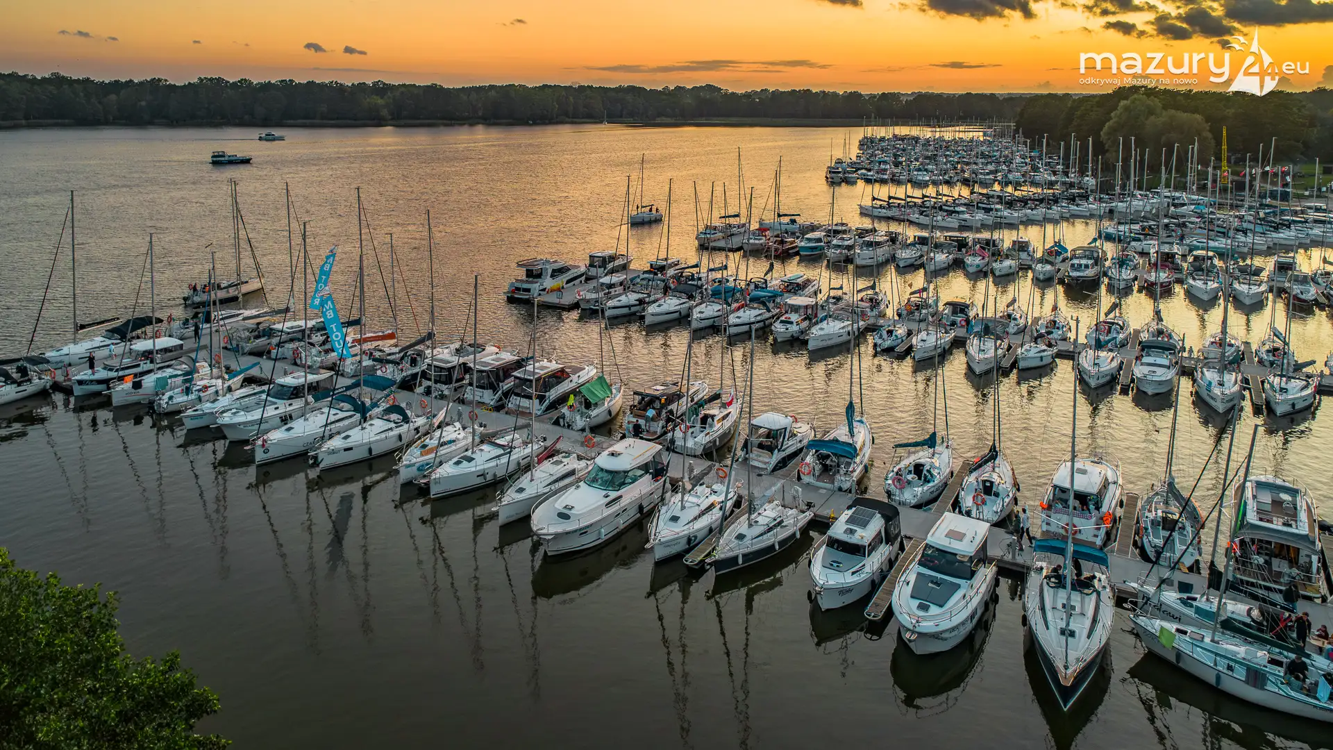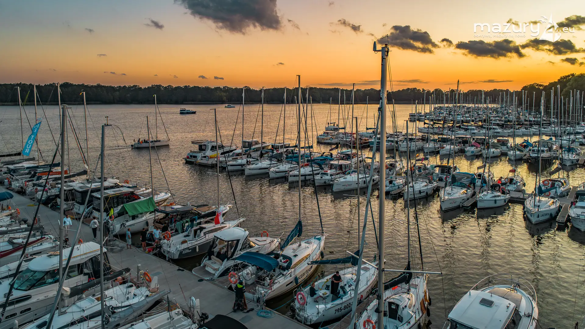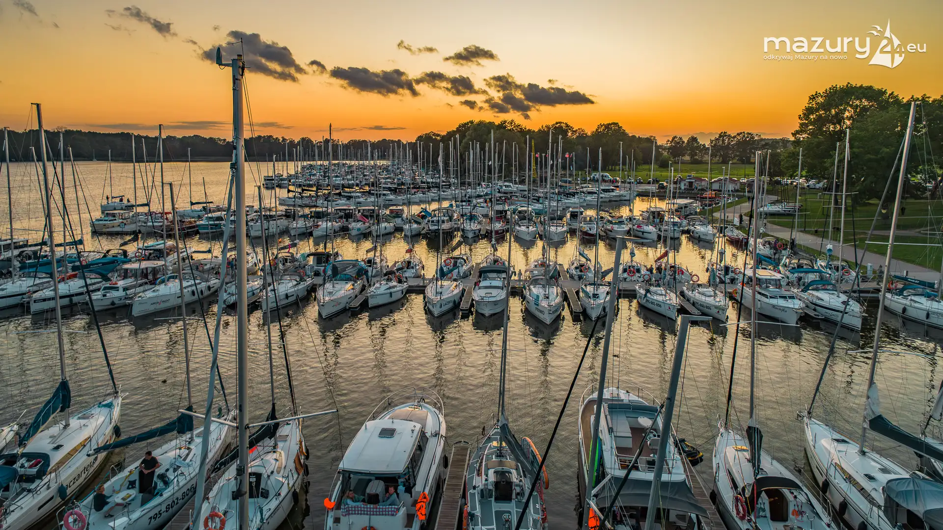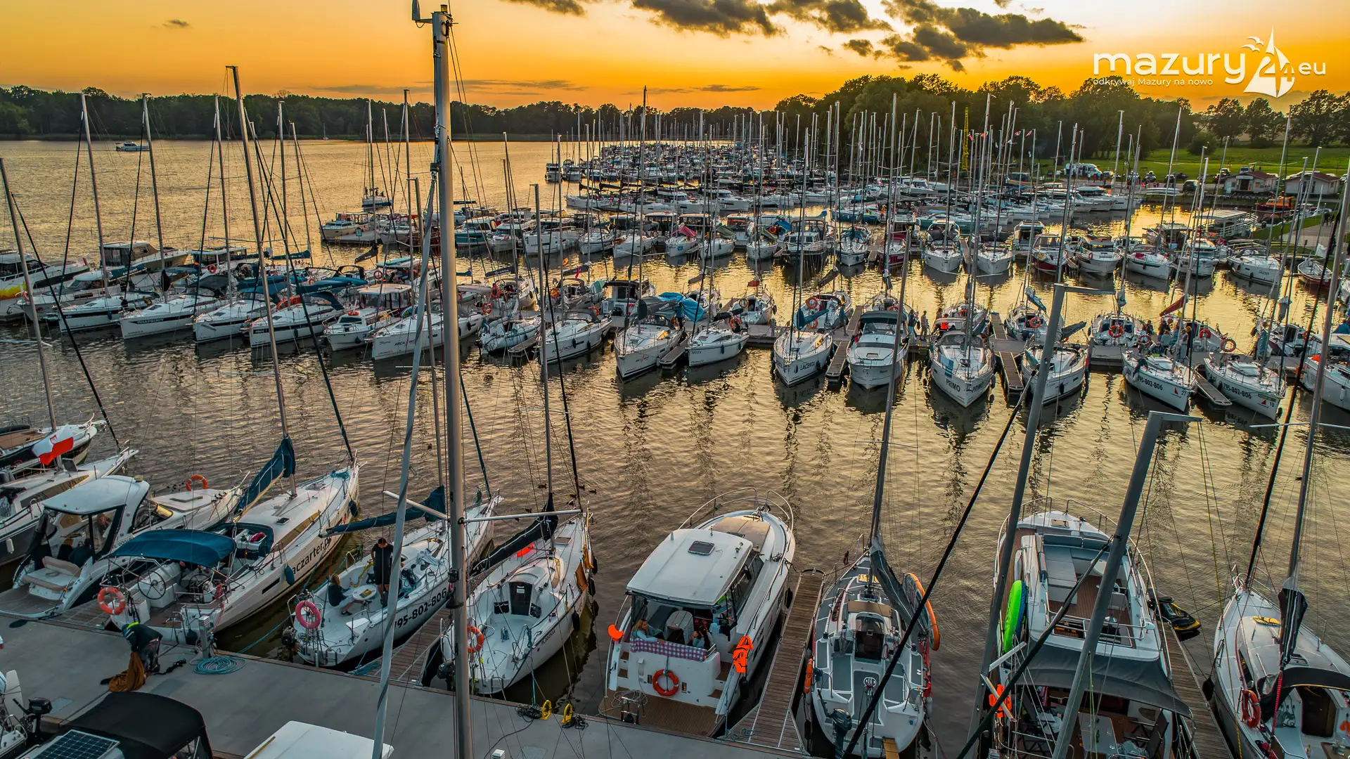 Sztynort w sezonie prawie nigdy nie śpi... Zachód słońca wyznacza tylko kolejny etap dnia. Kilka dni temu udało nam się trafić na piękne rozpoczęcie wieczoru przy porcie zapchanym, niczym pełen wybrany grot. Ten największy port na Mazurach niesamowicie prezentuje się wypełnionymi po brzegi kejami i setkami masztów lekko bujającymi przez ruch na wodzie...