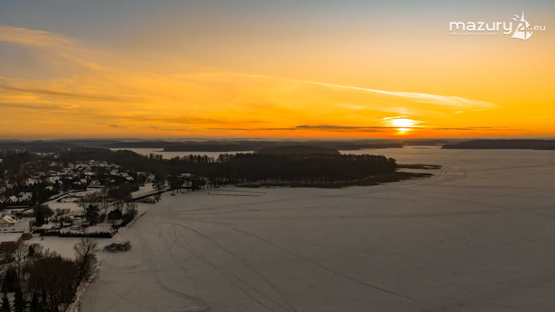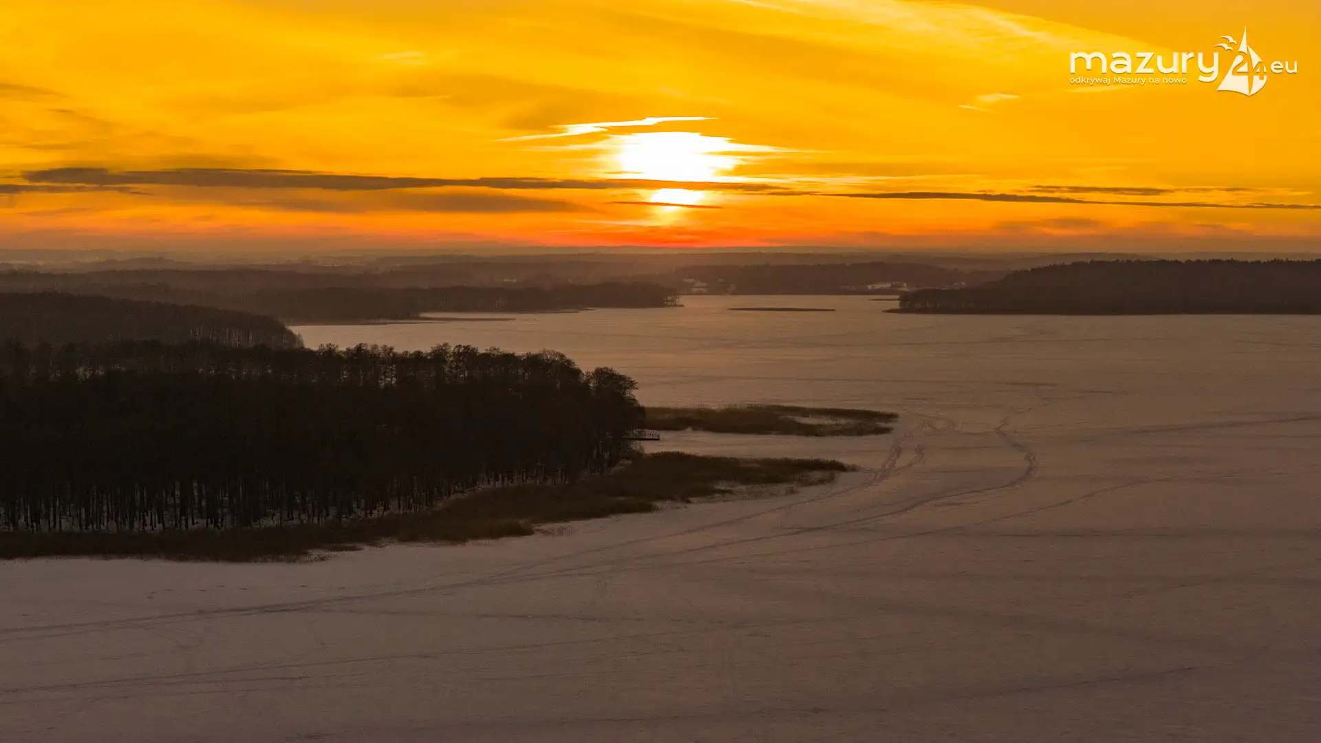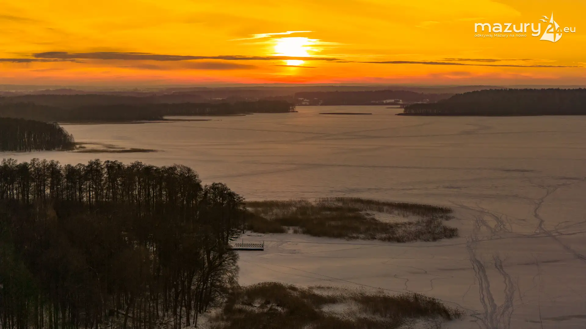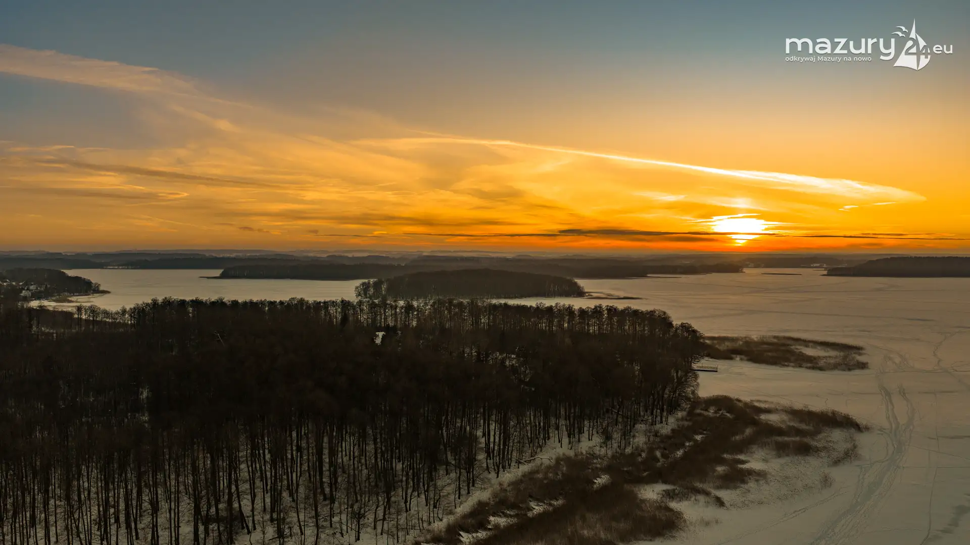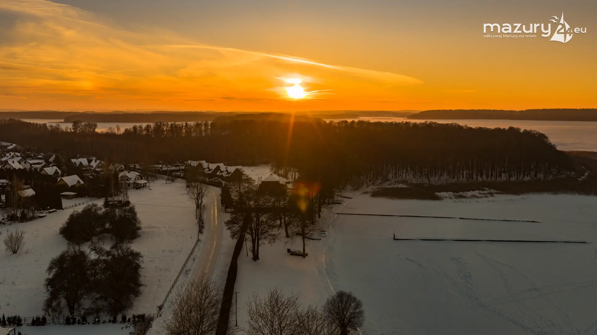 Mimo siarczystego mrozu, dziś wieczorem przyjrzeliśmy się zachodowi słońca w Pierkunowie nad jeziorem Kisajno. Latem na plaży, zawsze można spotkać wiele osób łapiących w kadry ostatnie promienie słońca. Zimą, słońce zachodzi w miejscu, które to uniemożliwia... ale nie z drona.