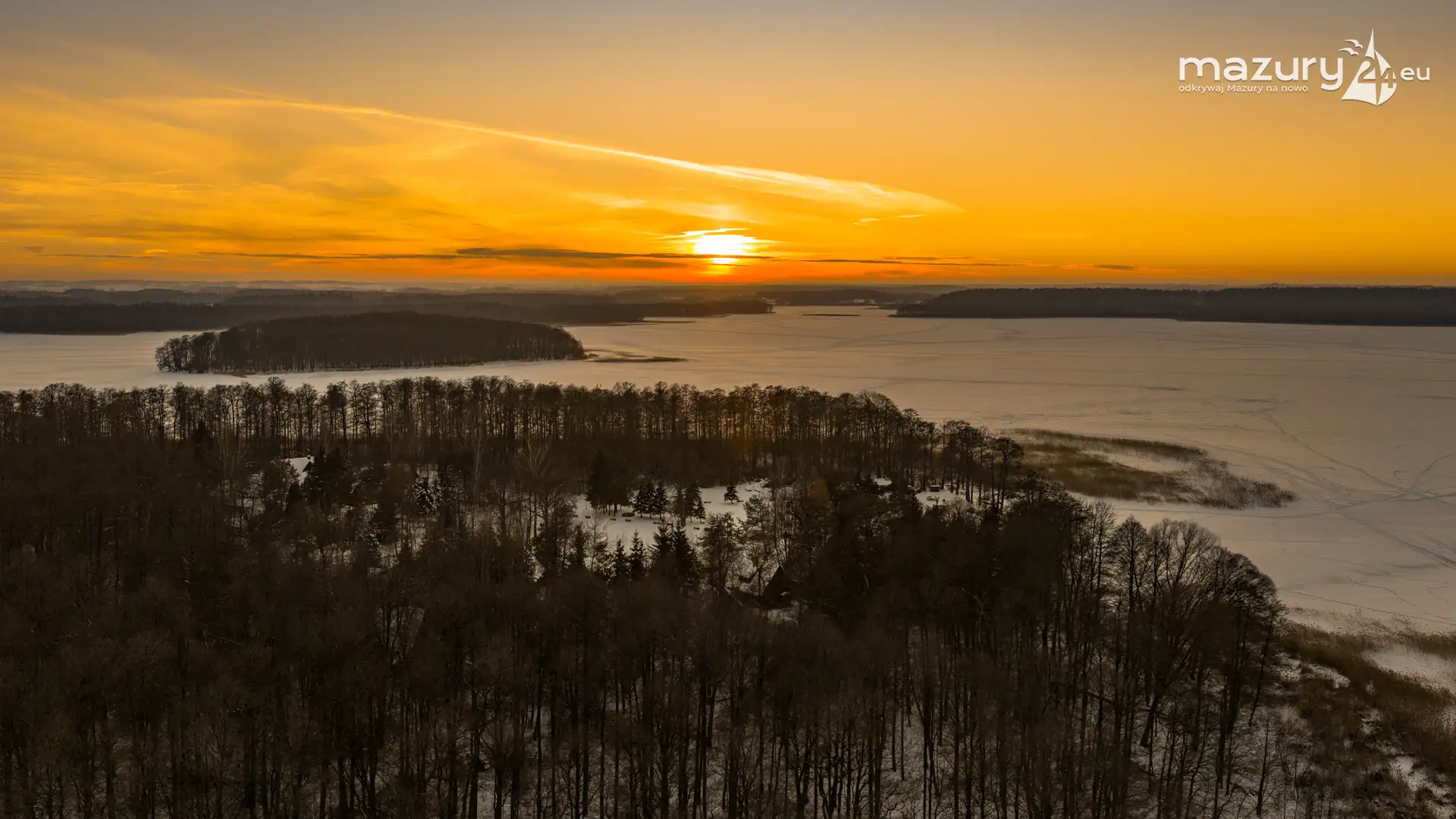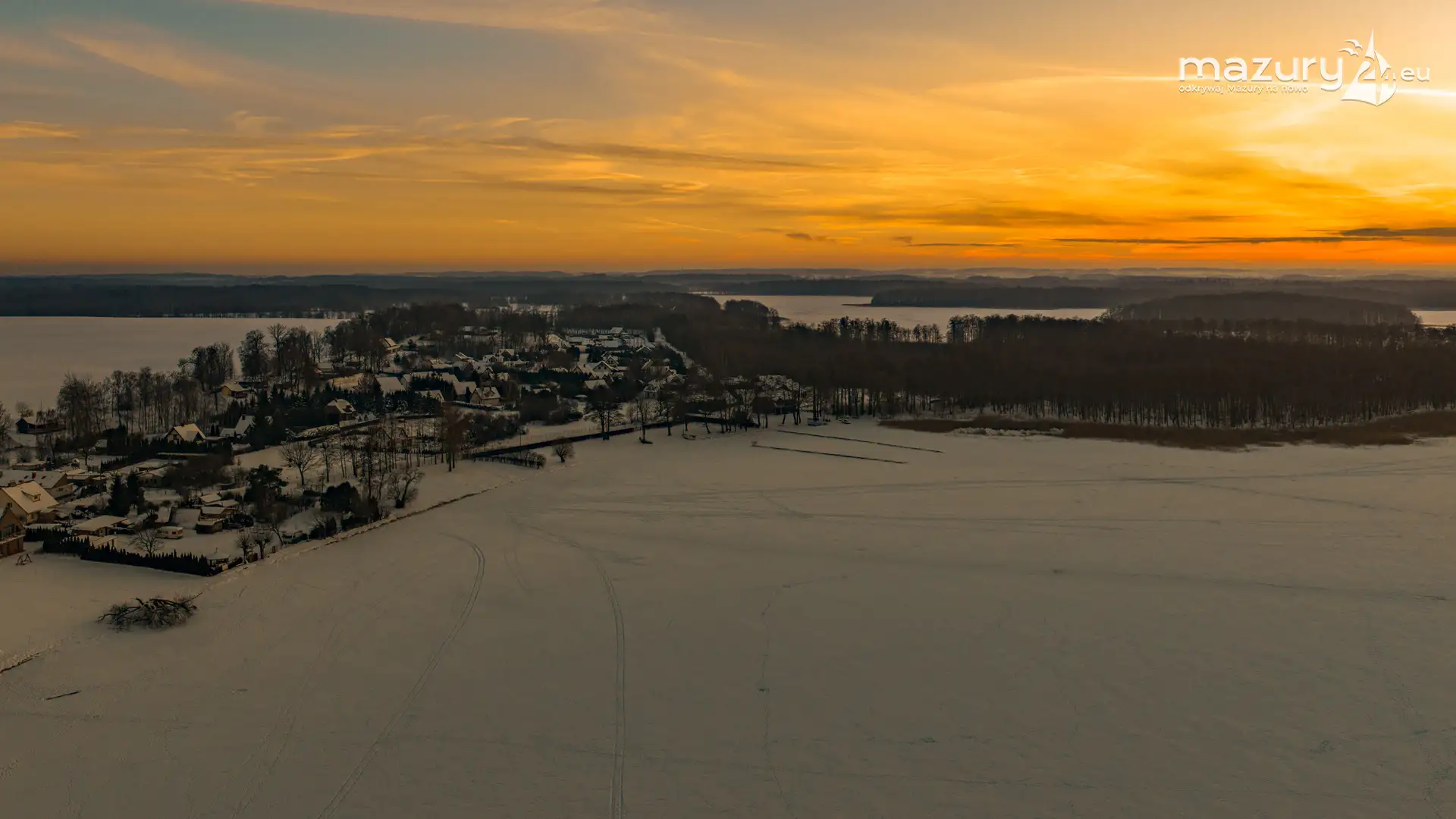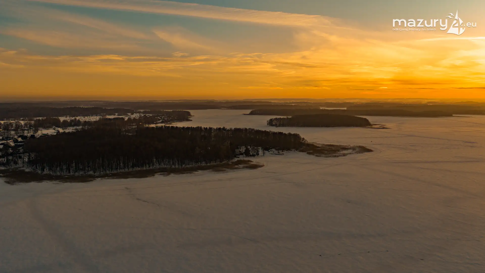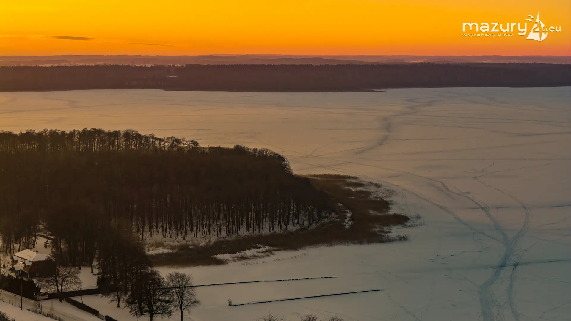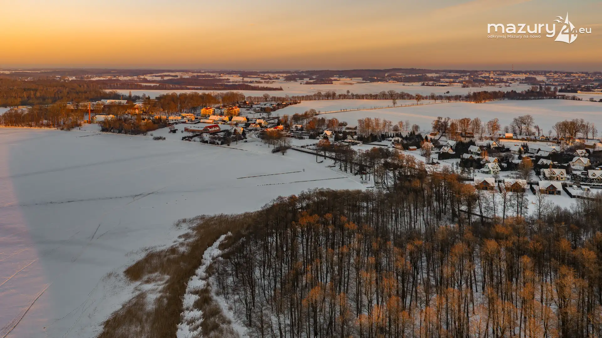 Mimo siarczystego mrozu, dziś wieczorem przyjrzeliśmy się zachodowi słońca w Pierkunowie nad jeziorem Kisajno. Latem na plaży, zawsze można spotkać wiele osób łapiących w kadry ostatnie promienie słońca. Zimą, słońce zachodzi w miejscu, które to uniemożliwia... ale nie z drona.