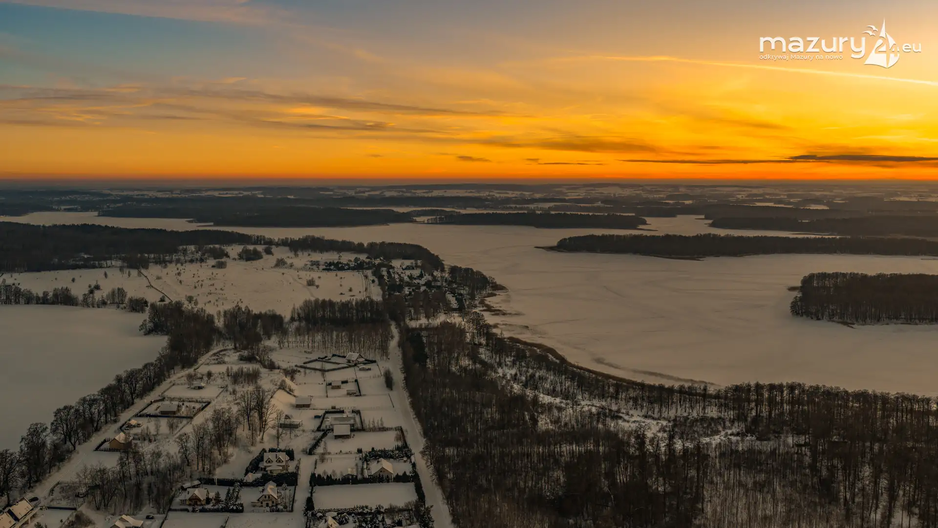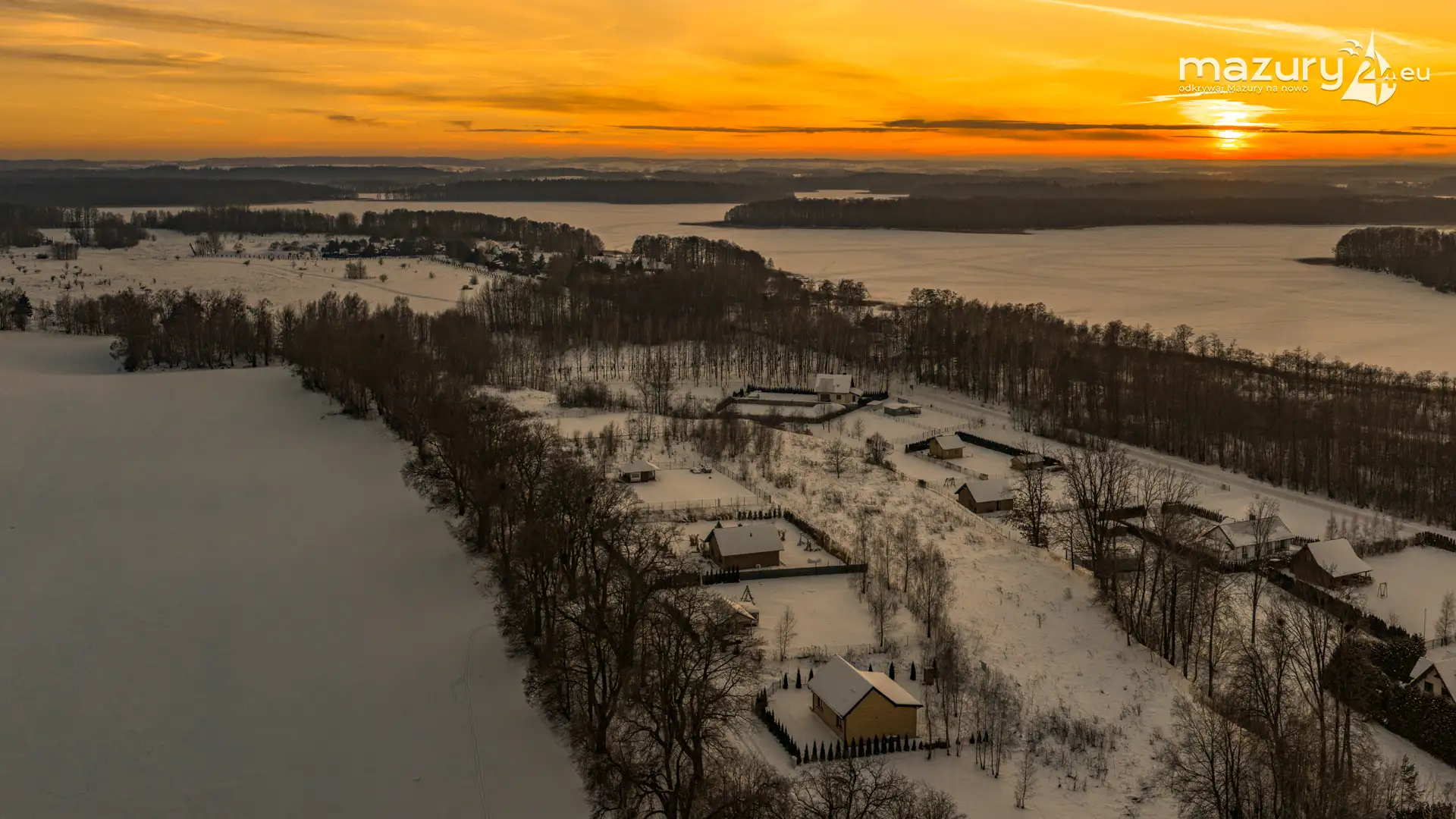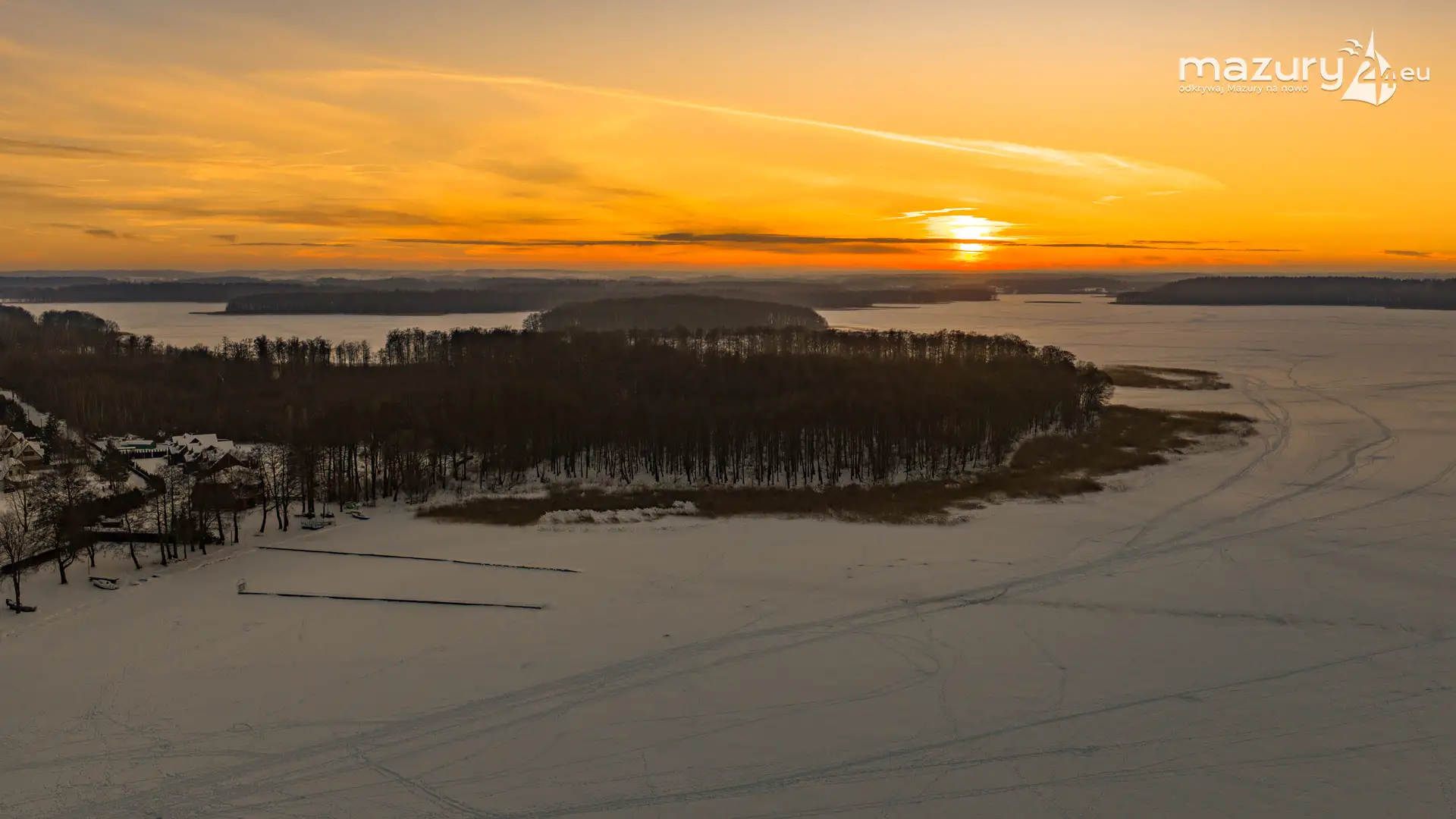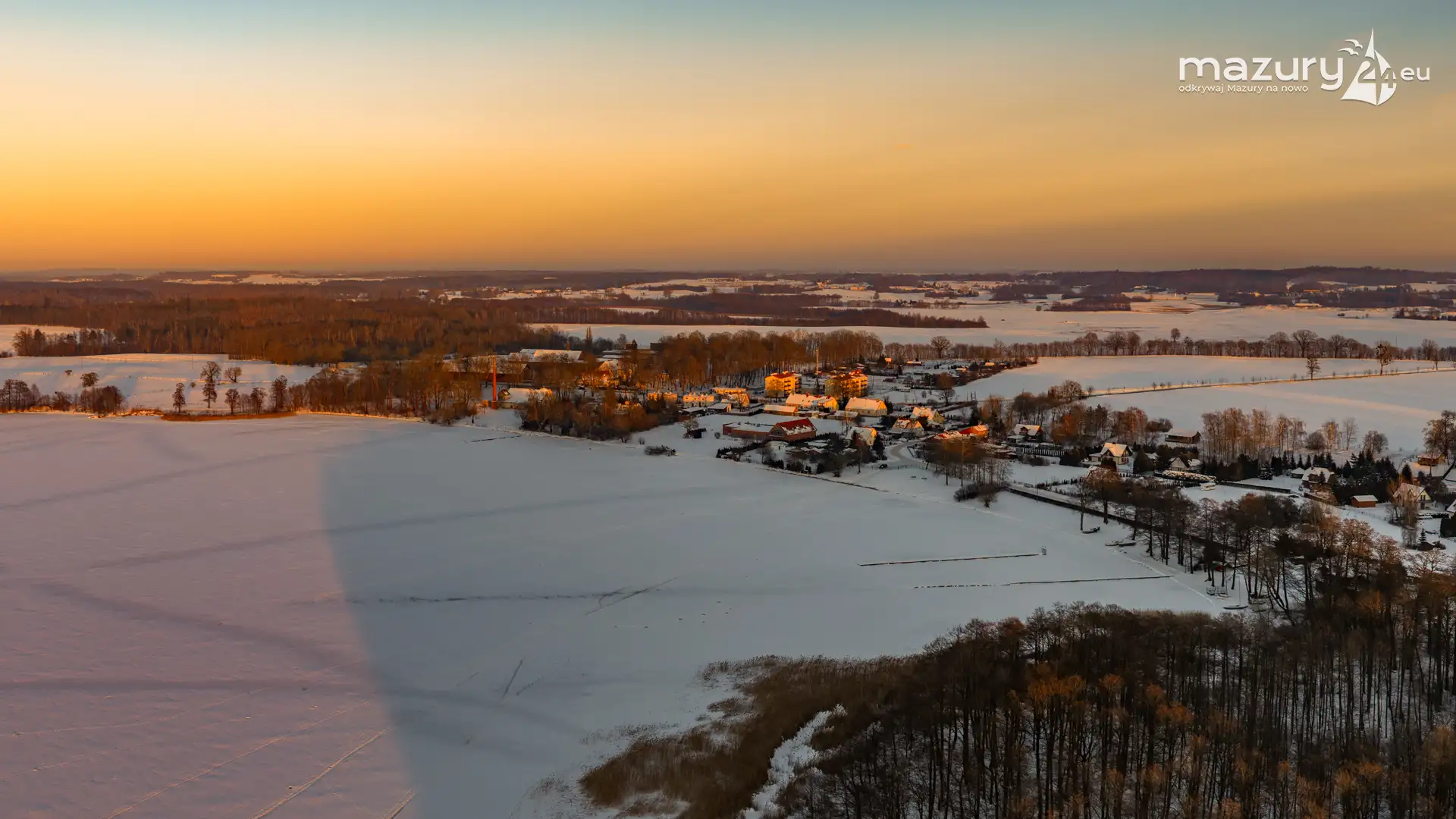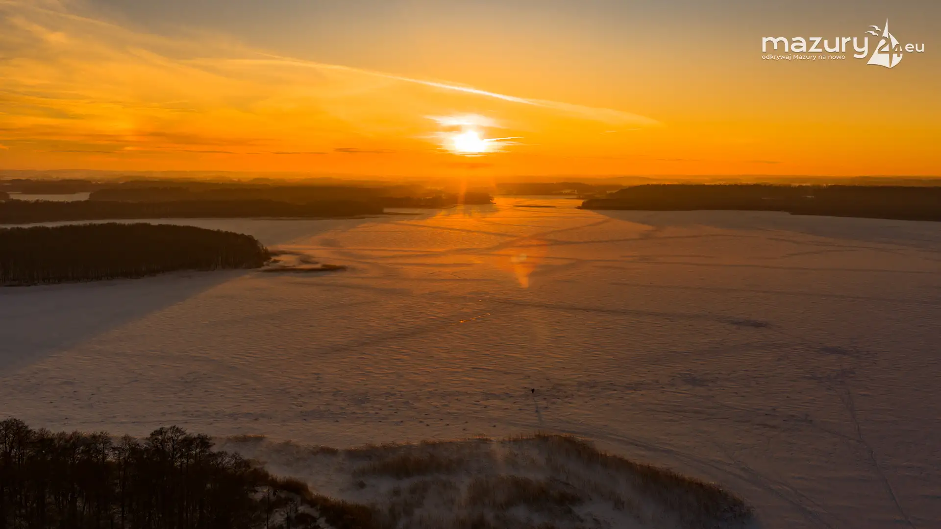 Mimo siarczystego mrozu, dziś wieczorem przyjrzeliśmy się zachodowi słońca w Pierkunowie nad jeziorem Kisajno. Latem na plaży, zawsze można spotkać wiele osób łapiących w kadry ostatnie promienie słońca. Zimą, słońce zachodzi w miejscu, które to uniemożliwia... ale nie z drona.
