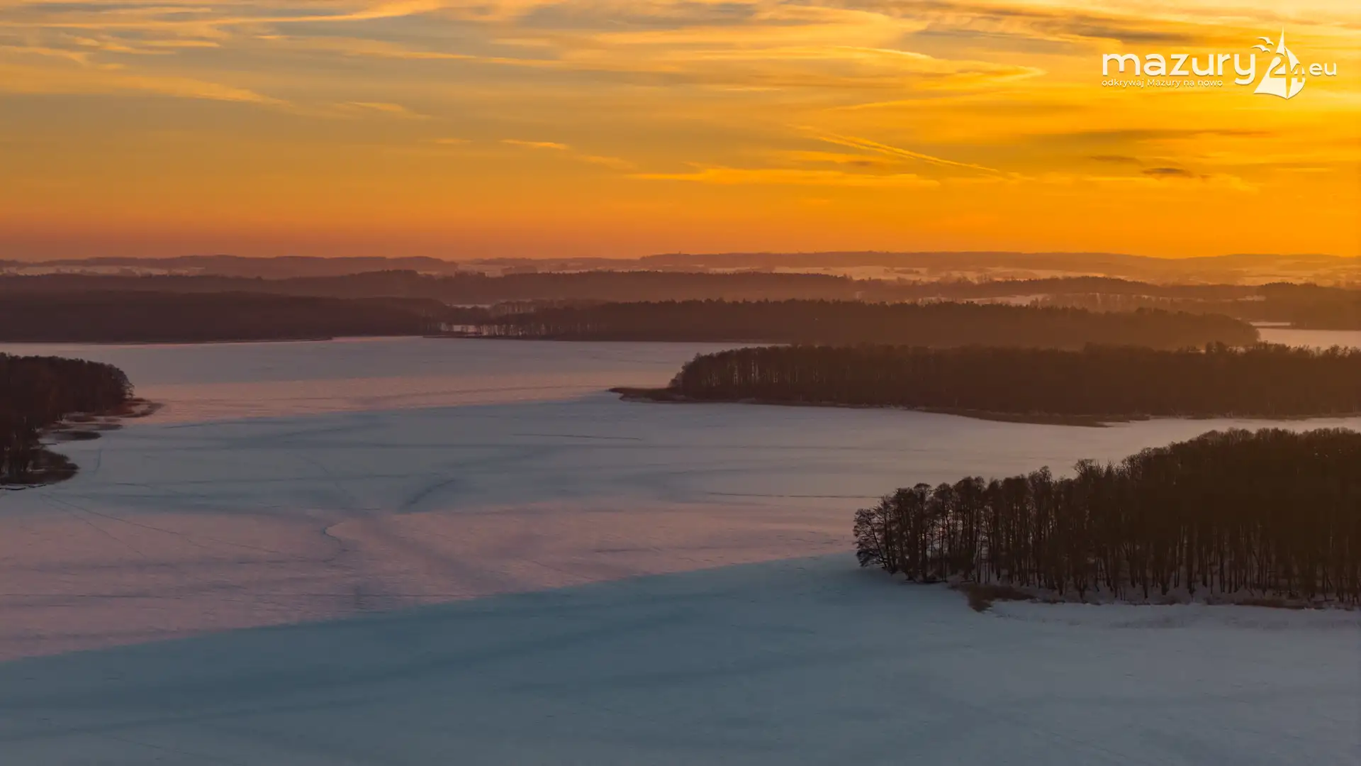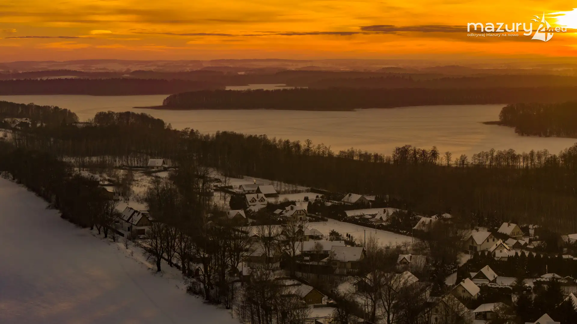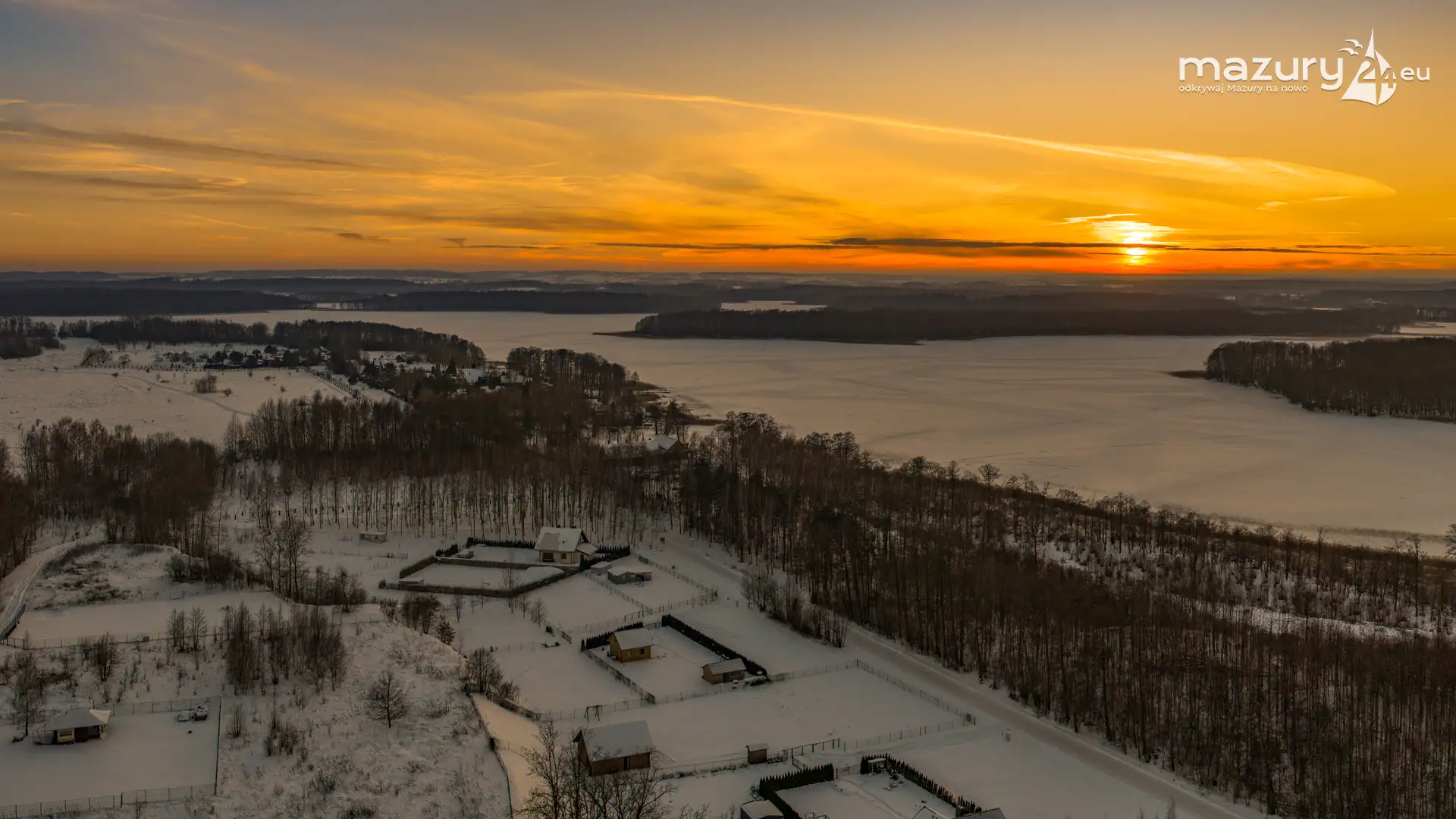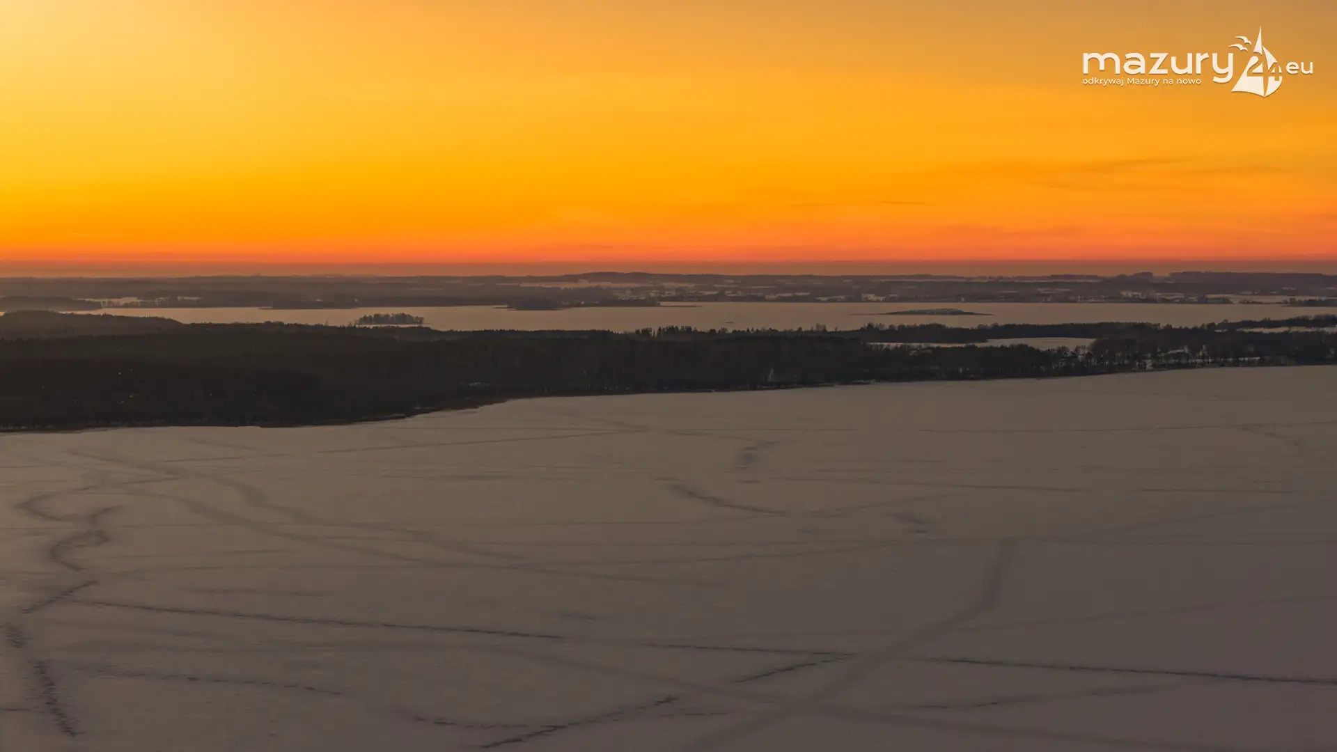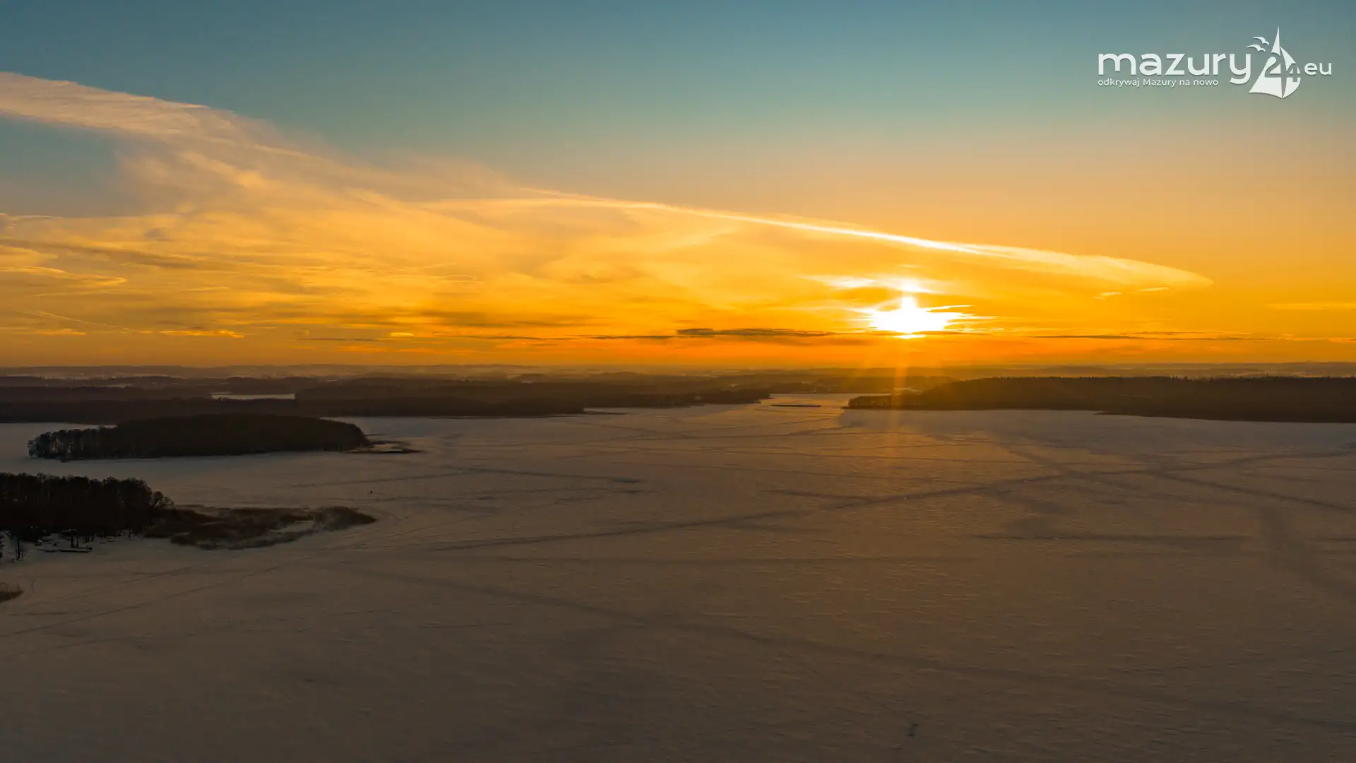 Mimo siarczystego mrozu, dziś wieczorem przyjrzeliśmy się zachodowi słońca w Pierkunowie nad jeziorem Kisajno. Latem na plaży, zawsze można spotkać wiele osób łapiących w kadry ostatnie promienie słońca. Zimą, słońce zachodzi w miejscu, które to uniemożliwia... ale nie z drona.