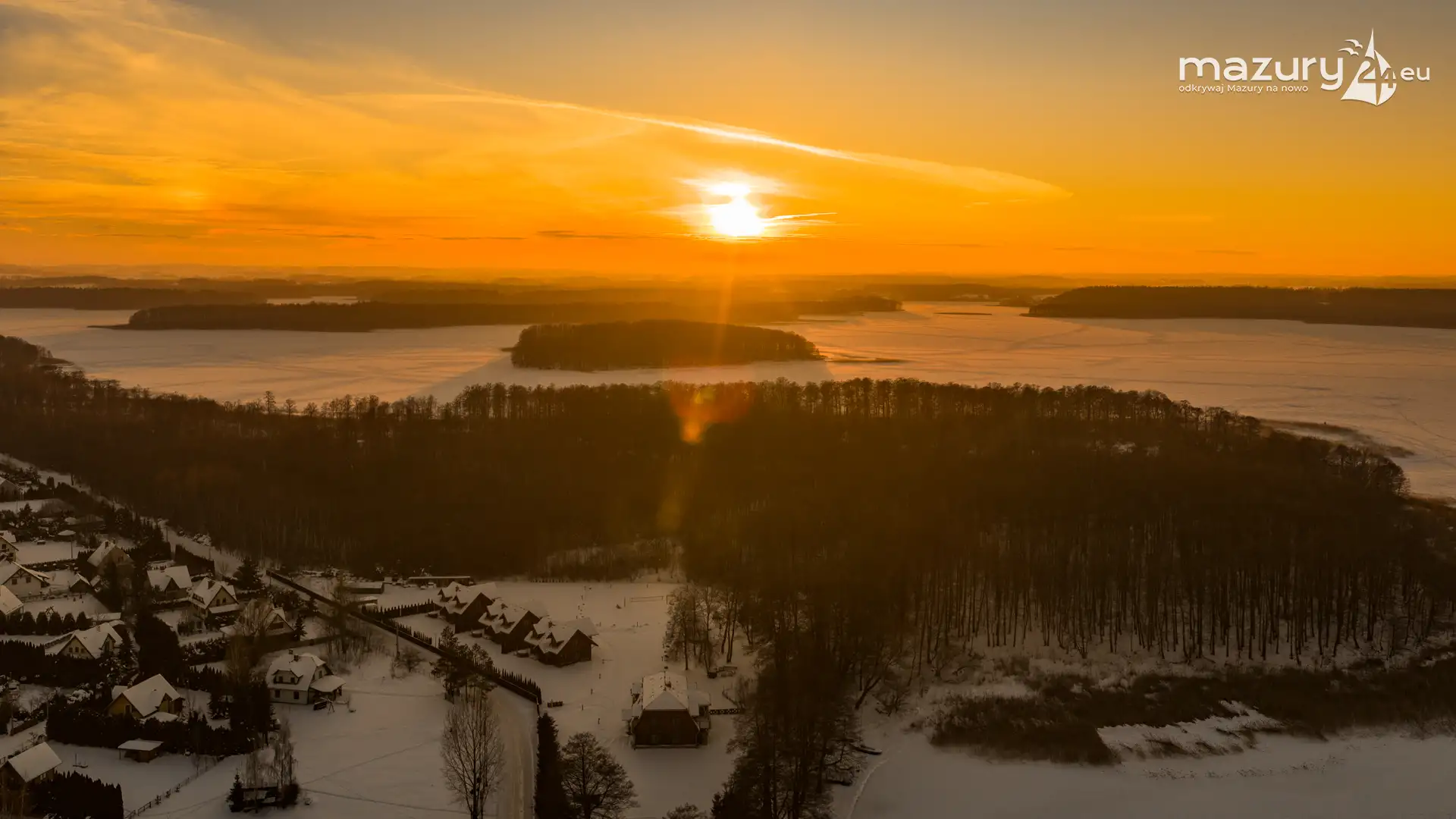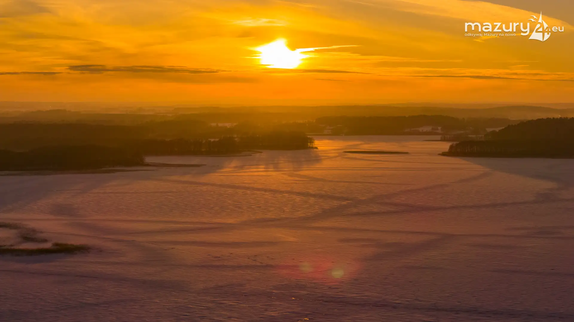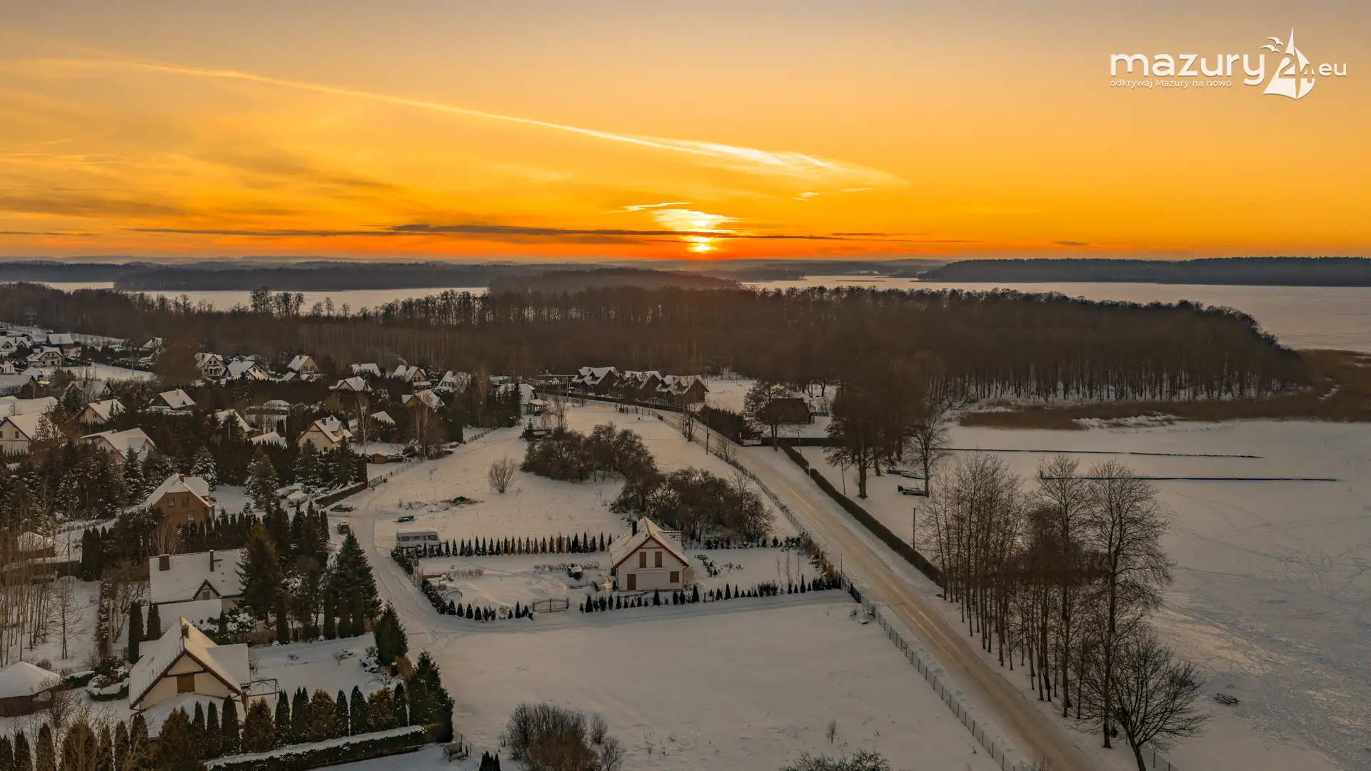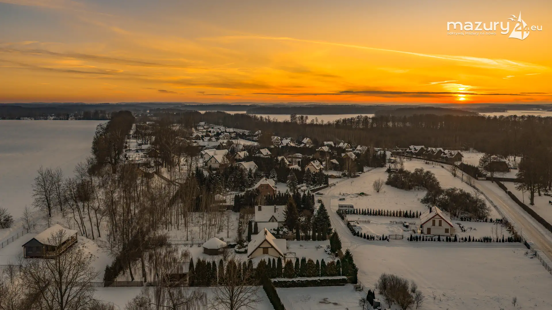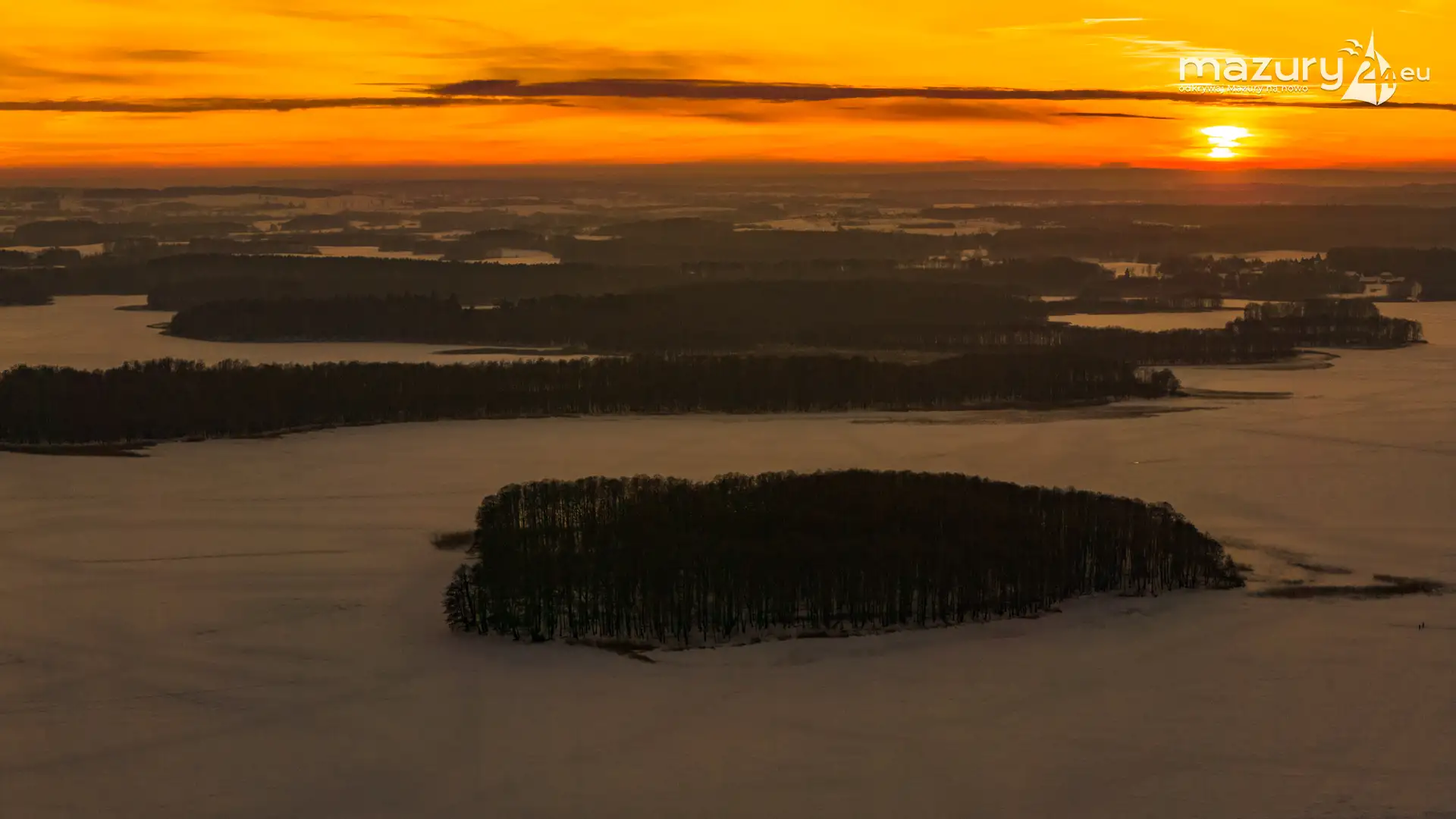 Mimo siarczystego mrozu, dziś wieczorem przyjrzeliśmy się zachodowi słońca w Pierkunowie nad jeziorem Kisajno. Latem na plaży, zawsze można spotkać wiele osób łapiących w kadry ostatnie promienie słońca. Zimą, słońce zachodzi w miejscu, które to uniemożliwia... ale nie z drona.
