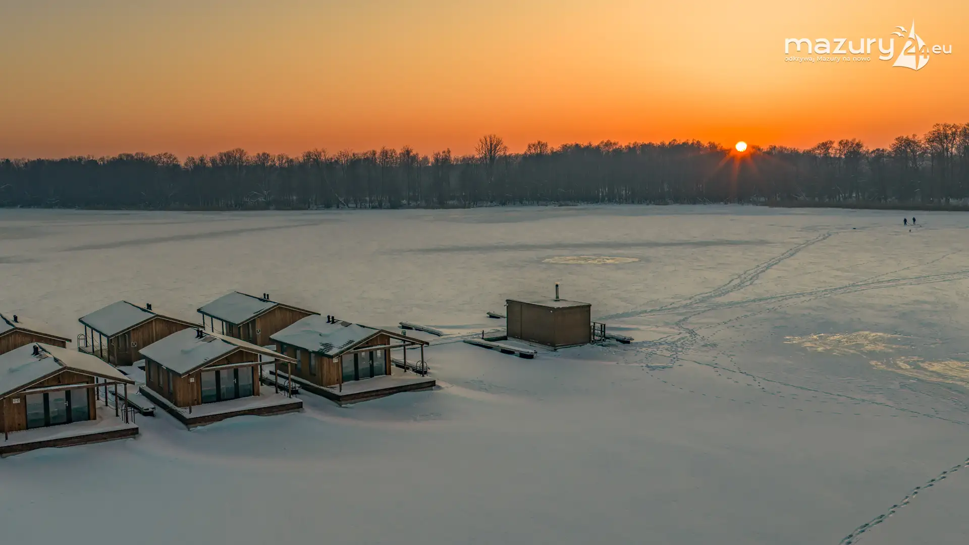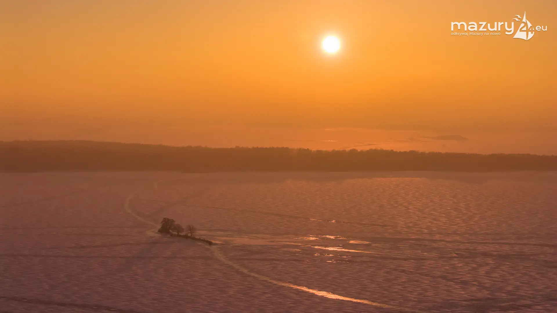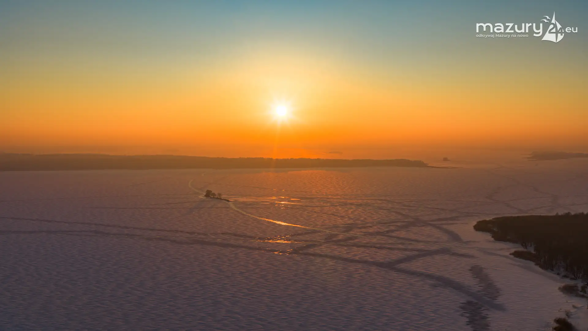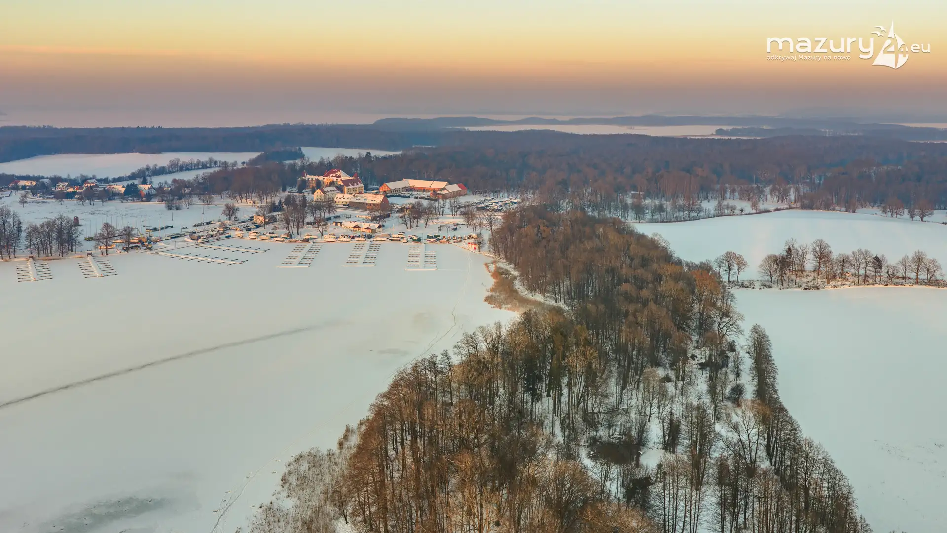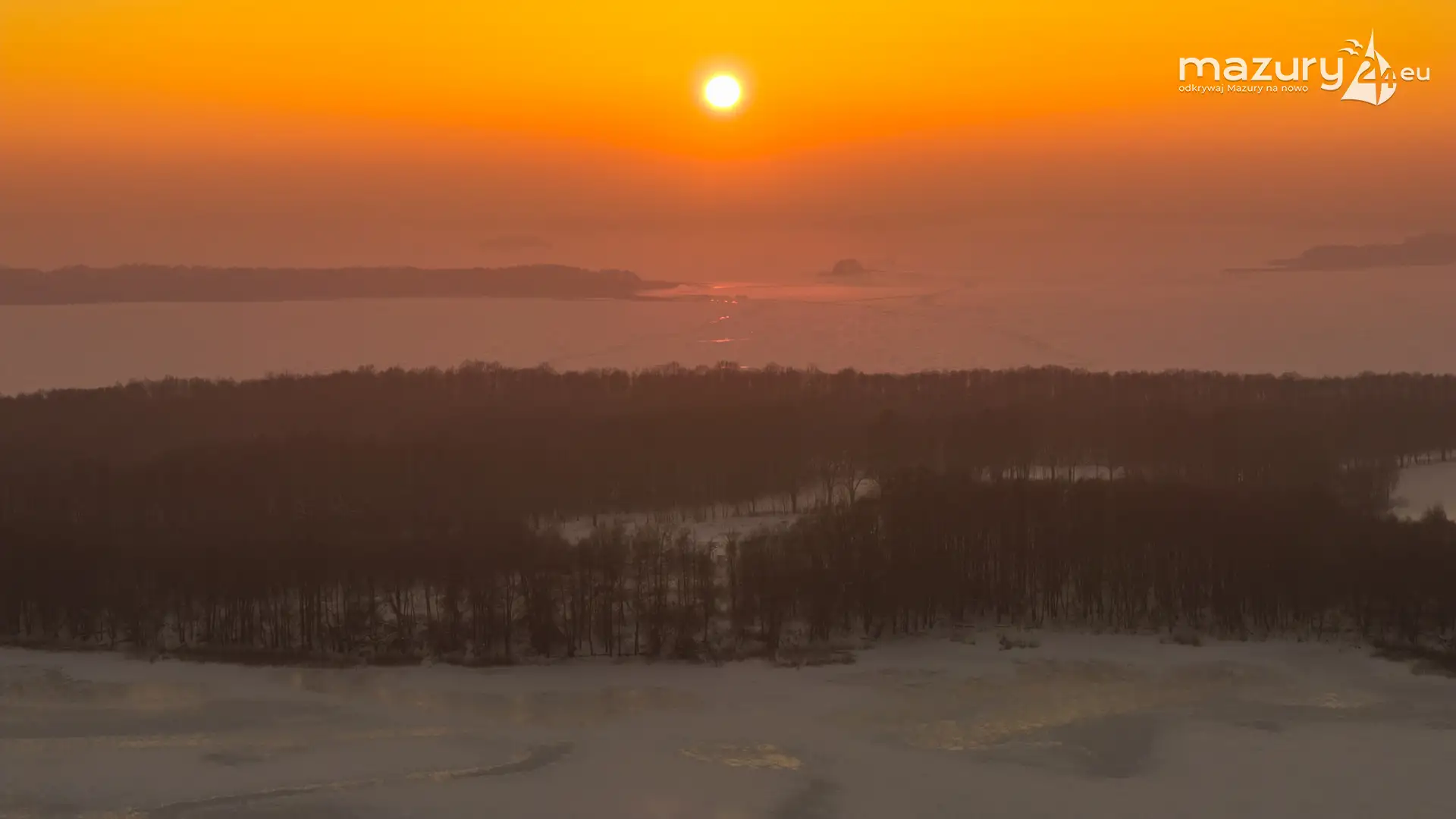 Zachód słońca nad jeziorem Bocznym z drona, styczeń 2026 r.