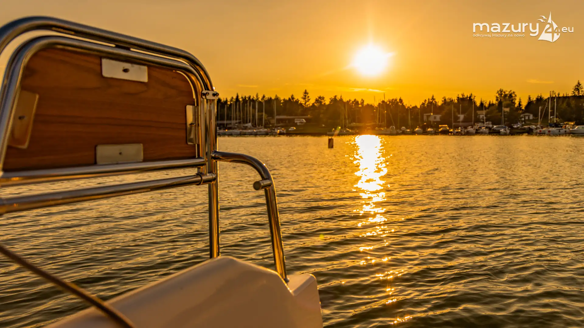 Zachód słońca nad jeziorem Ryńskim z pokładu żaglówki, czerwiec 2024 r.