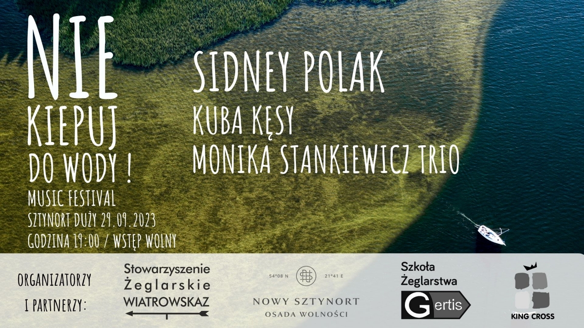 Port Sztynort zaprasza do udziału w kolejnej edycji Festiwalu Muzycznego "Nie Kiepuj Do Wody". W tym roku wystąpią: Monika Stankiewicz Trio, Kuba Kęsy oraz Sidney Polak. Start godzina 19:00. Wstęp wolny!